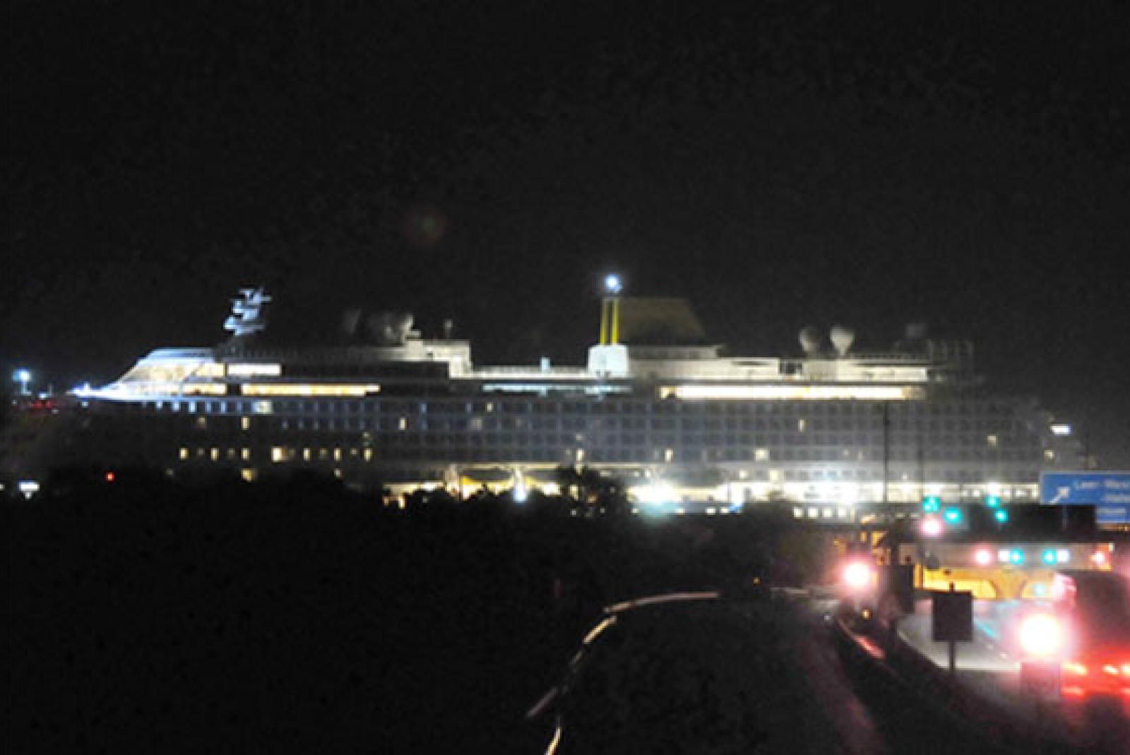 Das neue Kreuzfahrtschiff der Meyer Werft hat in der Nacht ...