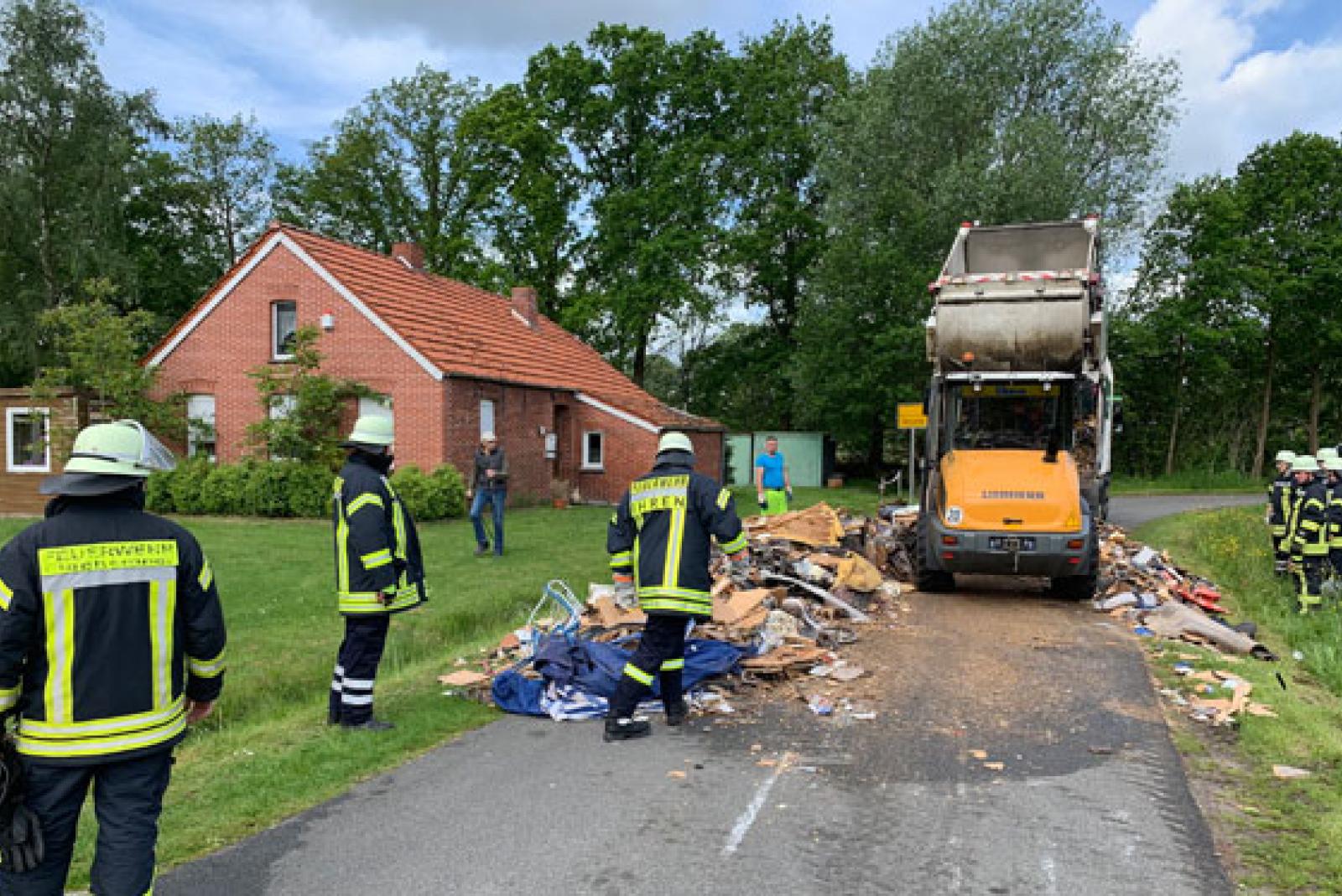 Der Müll auf der Straße wurde später dann in ein zweites Müllfahrzeug eingeladen und abtransportiert. Im Einsatz waren die Feuerwehren aus Ihren und Flachsmeer sowie die IuK- Einheit der Gemeinde mit dem Einsatzleitwagen. »Wie genau es zu dem Feuer in dem Müll gekommen war, konnte nicht geklärt werden«, so die Feuerwehr in einer Presseerklärung.