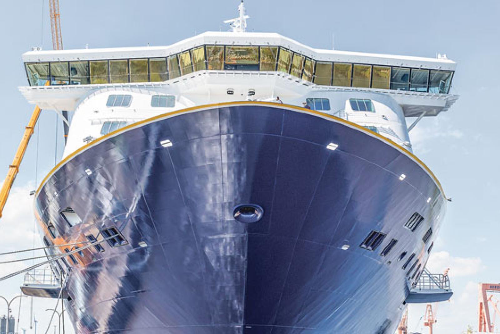 Die auf der Meyer Werft in Papenburg gebaute »Spirit of Discovery« ist gestern gegen 23.45 Uhr aus bislang ungeklärter Ursache mit einem Dalben am Binnenhaupt der Großen Seeschleuse in Emden kollidiert.