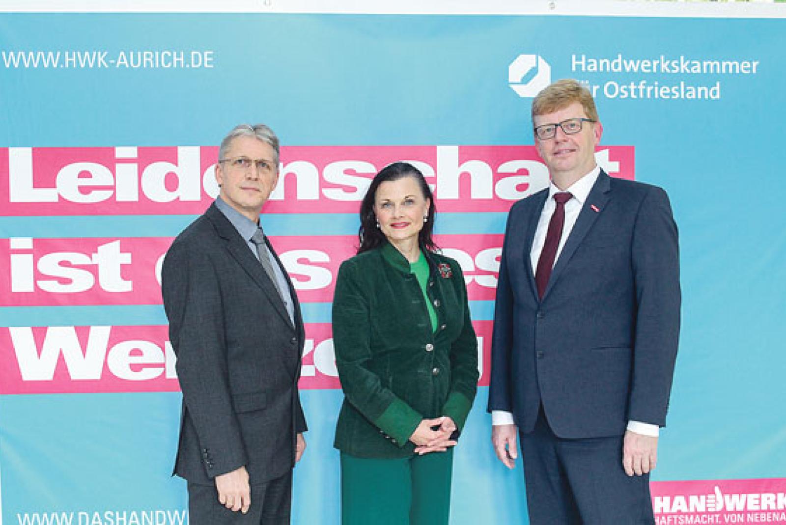Der Präsident der Handwerkskammer für Ostfriesland, Albert Lienemann, empfing jetzt gemeinsam mit Hauptgeschäftsführer Jörg Frerichs die CDU-Bundestagsabgeordnete Gitta Connemann aus Hesel in Aurich. Die Politikerin kam, um den neuen Hauptgeschäftsführer kennenzulernen. Jörg ...