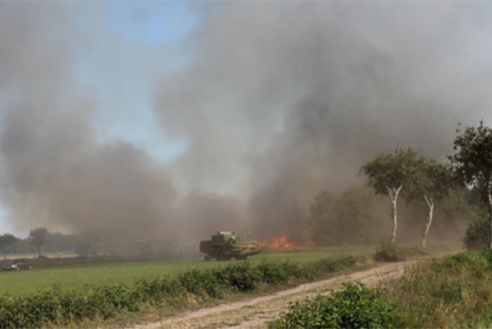 Mähdrescher gerät in Brand - Großeinsatz der Feuerwehr in Ihlow