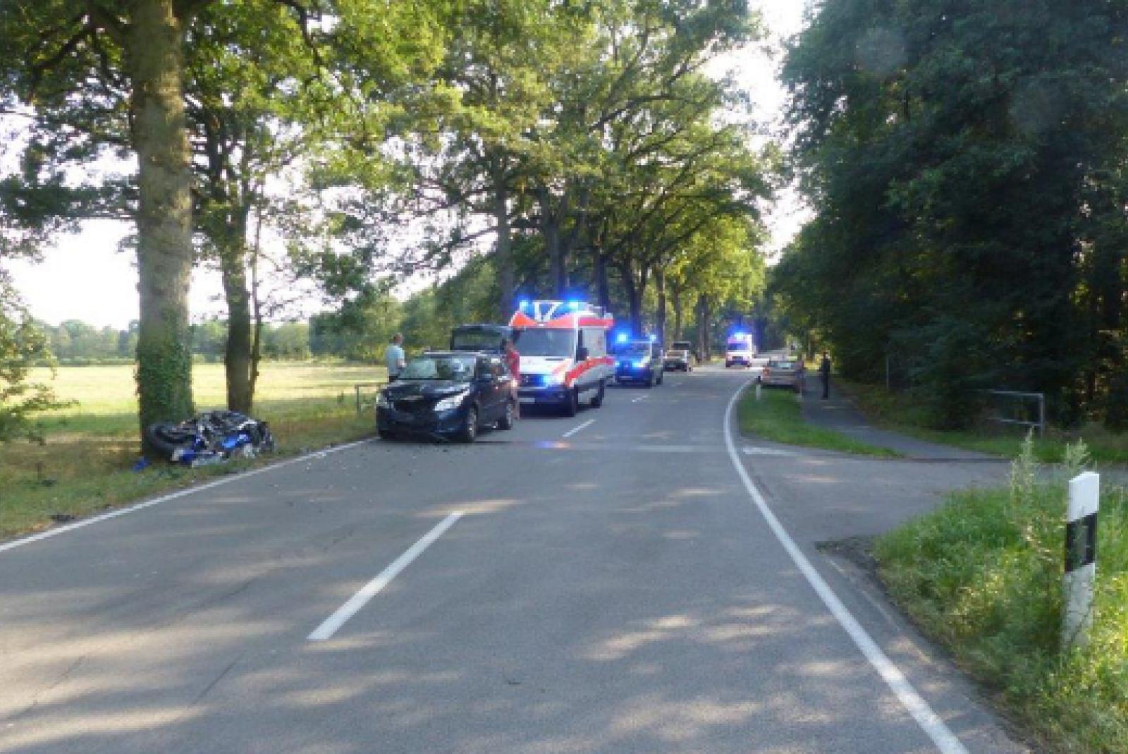Wie die Polizei mitteilte, war der 25-Jährige mit seinem Motorrad aus Holte kommend Richtung Marienheil unterwegs. Vor einer Rechtskurve setzte er zum Überholen des vor ihm fahrenden Pkw an. Bei diesem Überholmanöver kam es laut Polizei innerhalb der Kurve zum Frontalzusammenstoß mit einem entgegenkommenden Skoda eines 42-Jährigen aus Stuhr bei Bremen. Der 25-jährige Weeneraner wurde auf die Fahrbahn geschleudert und blieb am Fahrbahnrand liegen. Sein Motorrad wurde beim Zusammenprall gegen einen Baum geschleudert.