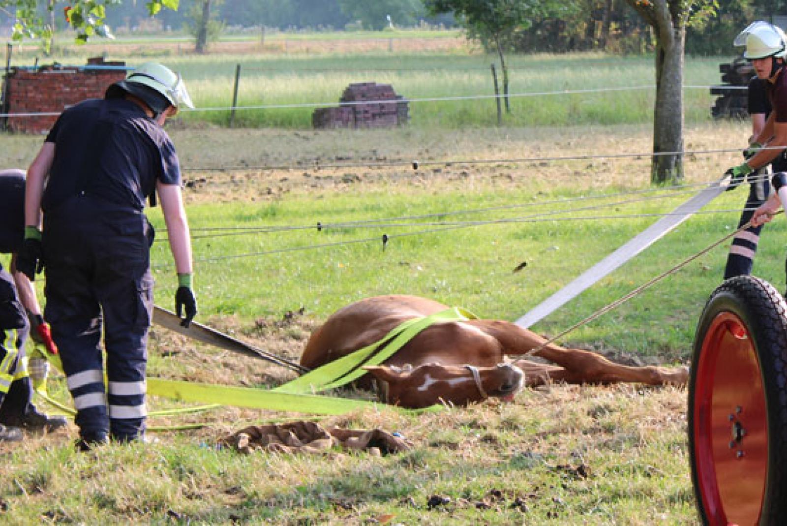 Ein Pferd war auf einer Weide an der Straße Kleiner Bollen in einen Graben abgerutscht und konnte sich aber nicht selbst befreien.