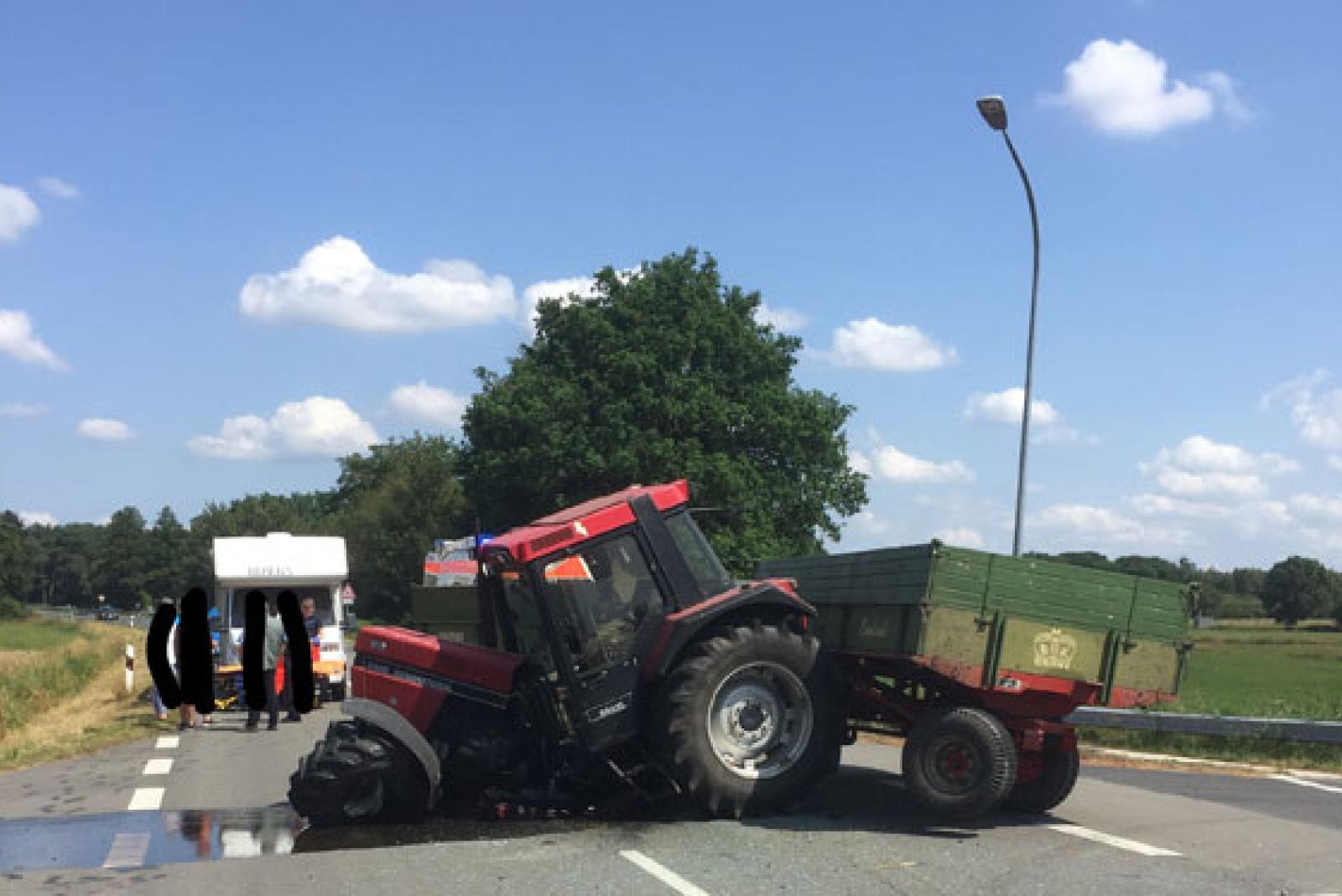 Am Sonntag gegen 13.15 Uhr ereignete sich auf der Lammertsfehner Straße, wie die Polizei heute mitteilt, ein Verkehrsunfall unter Beteiligung eines Treckergespanns und eines BMW.