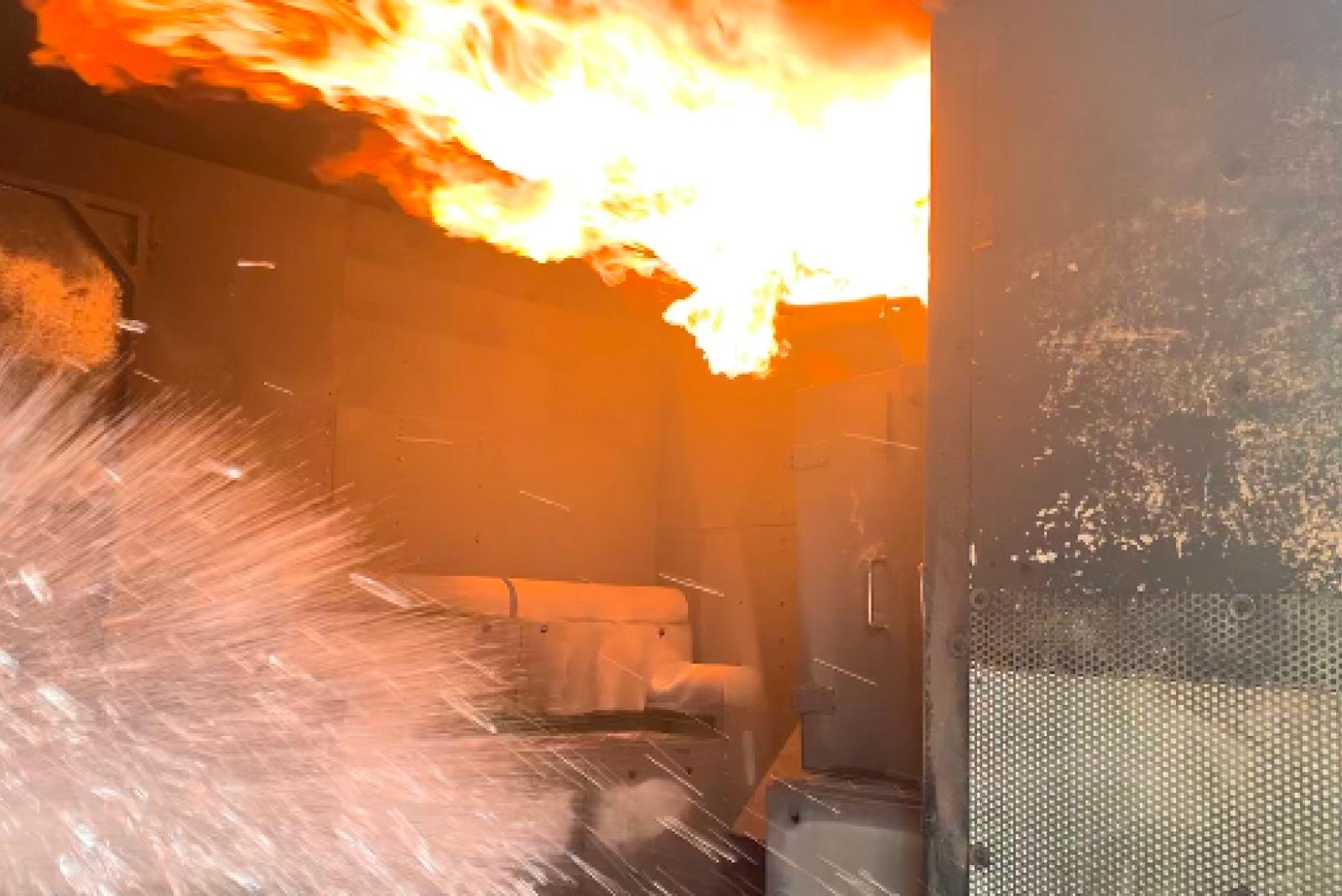 In einem speziellen Brandübungscontainer, der seit Freitagmorgen