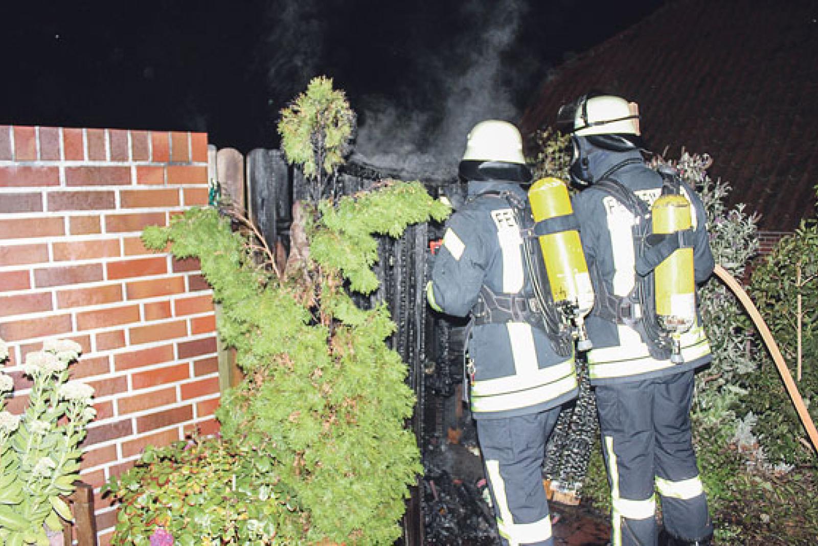 Die Bewohner des Hauses hatten in der Nacht bemerkt, dass auf der Terrasse ein Feuer ausgebrochen war und dann umgehend die Feuerwehr alarmiert. Danach brachten sie Gartenmöbel in Sicherheit und begannen mit einem Gartenschlauch erste Löschversuche.