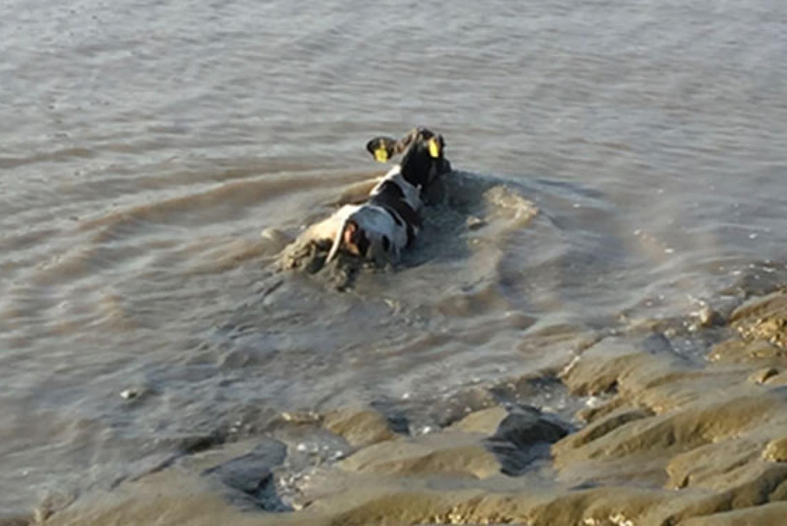Die Feuerwehr Leer wurde um 17.41 Uhr alarmiert und rückte zum Ledasperrwerk aus. Ein Bootfahrer hatte zwischen dem Sperrwerk und der Ledabrücke eine hilflose Kuh im Wasser bemerkt und den Notruf gewählt. Vor Ort stellten sich dann heraus, dass es sich um ein Kalb handelte, das immer wieder versuchte, ans Ufer zu kommen, aber am Schlick scheiterte.