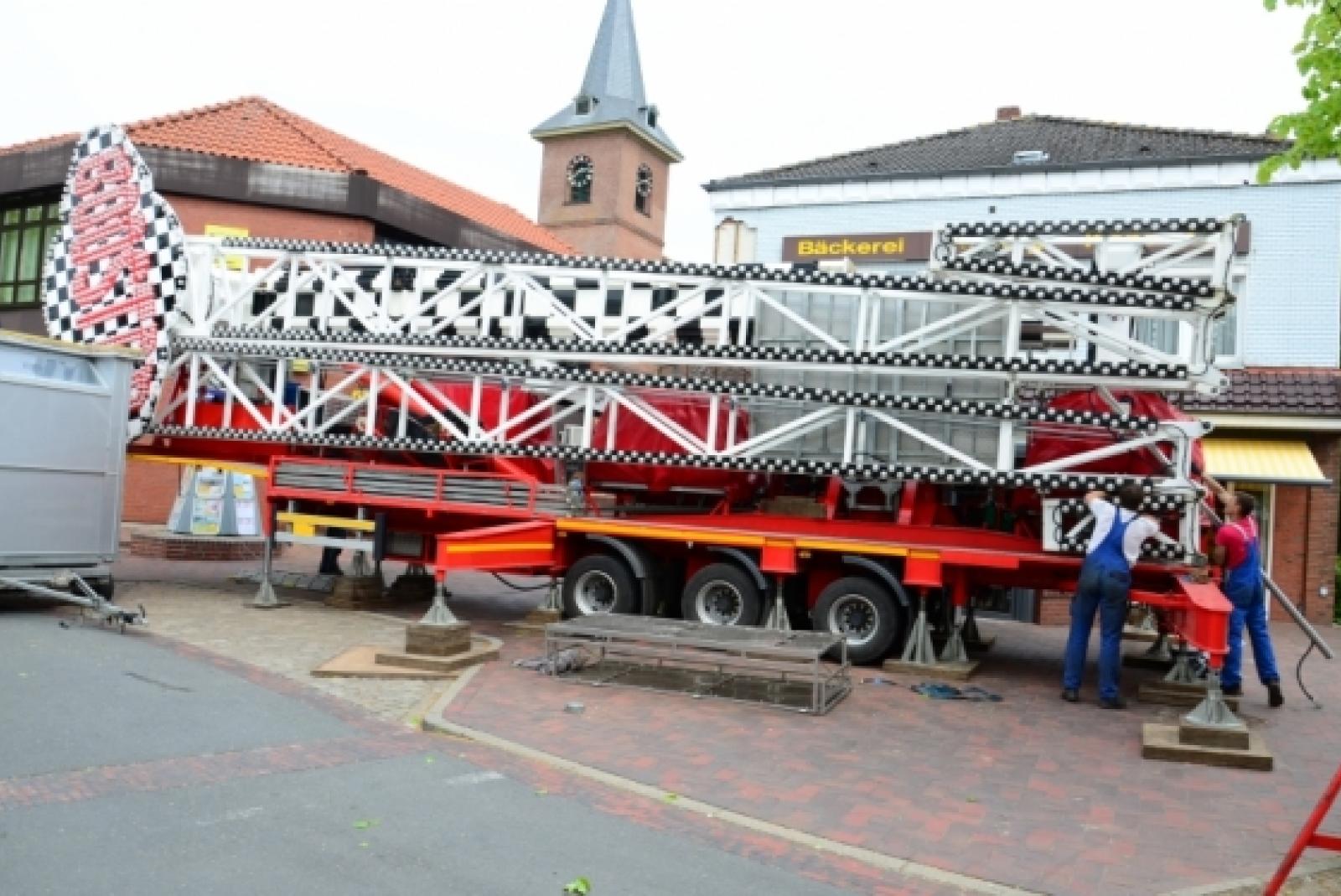 Aufbau des Bunder Pfingstmarkts - Neue Attraktion "schleudert" Besucher 400 Meter hoch