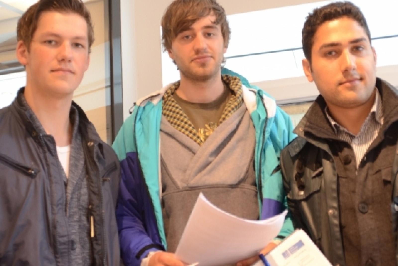 Bitten um Unterstützung bei ihrer Umfrage: Felix Goos, Marvin Killat und Melhem Daoud (von links).  © Foto: Hanken
