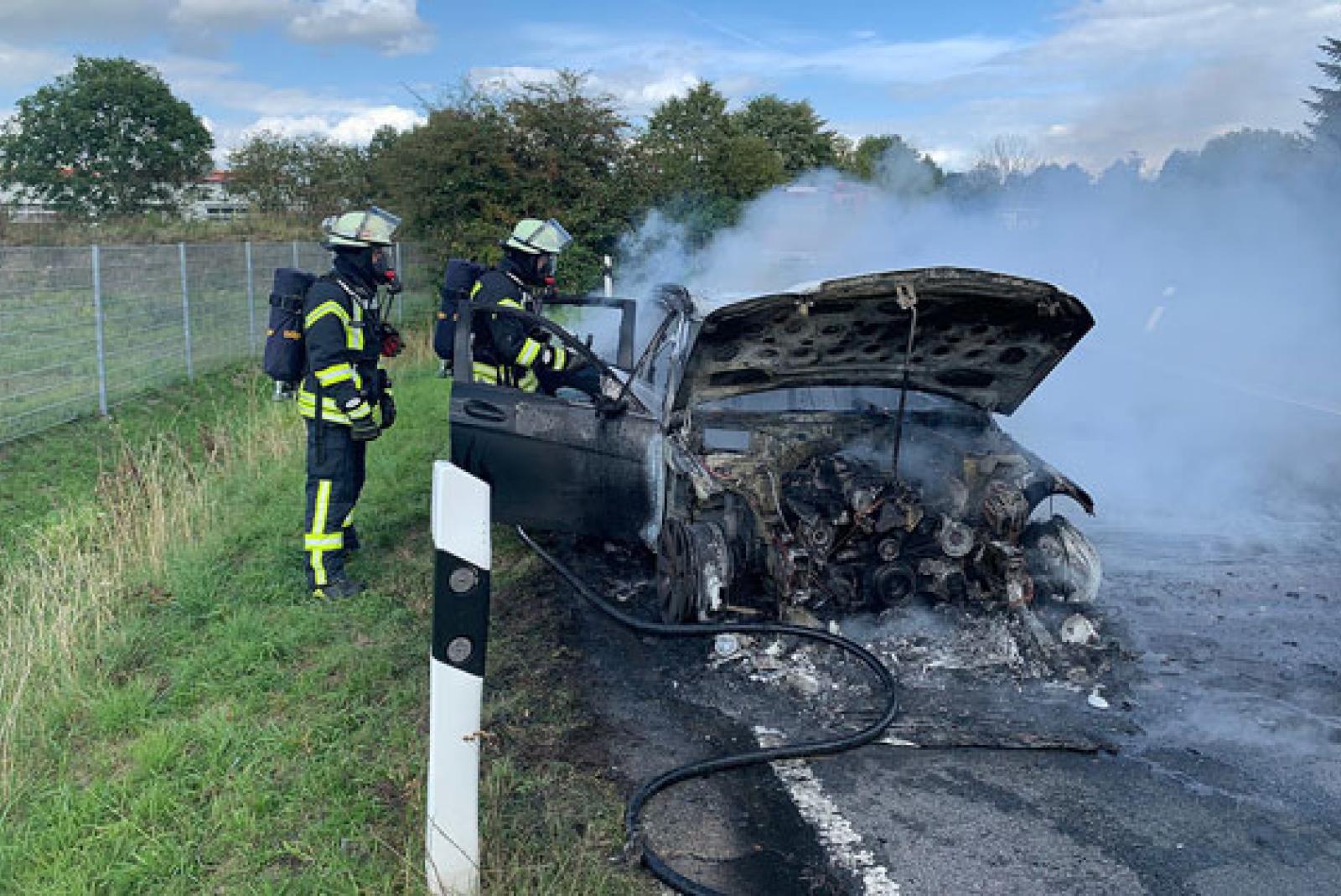 Die Feuerwehr hatte die Flammen zwar schnell unter Kontrolle, der Wagen brannte aber vollständig aus.