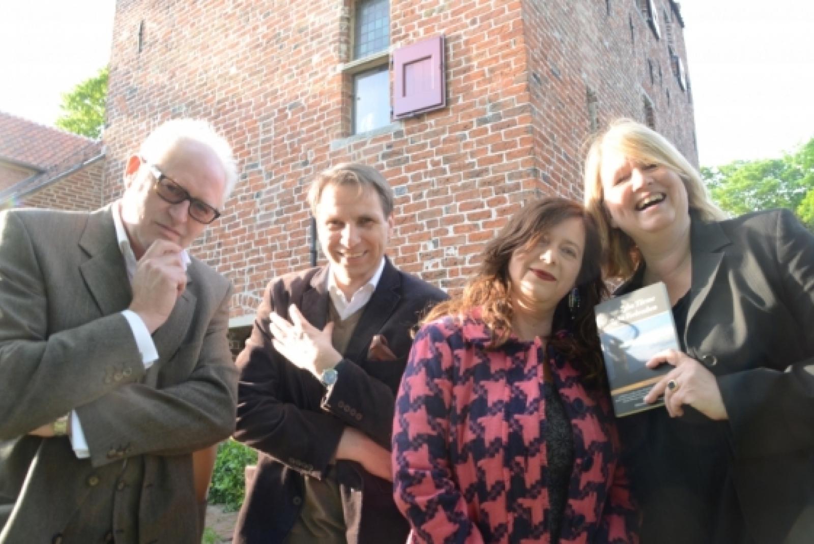 Im Schatten des alten Steinhaus-Turmes setzen sich die Autoren Silke Arends, Usch Luhn,?Lübbert Haneborger und Hans-Erich Viet in Szene (von rechts).? © Foto: Hanken