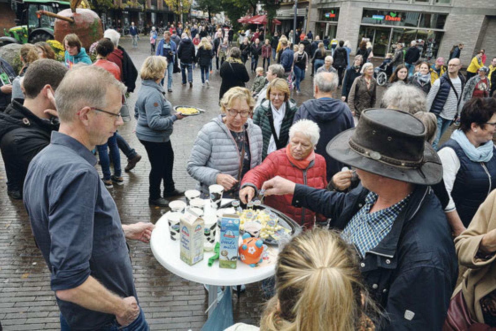 Bereits zum zehnten Mal gab es in diesem Jahr eine Erntedank-Aktion der Bäuerinnen und Bauern aus dem Landkreis Leer am Gallimarktssonntag auf dem Denkmalplatz in der Fußgängerzone von Leer.