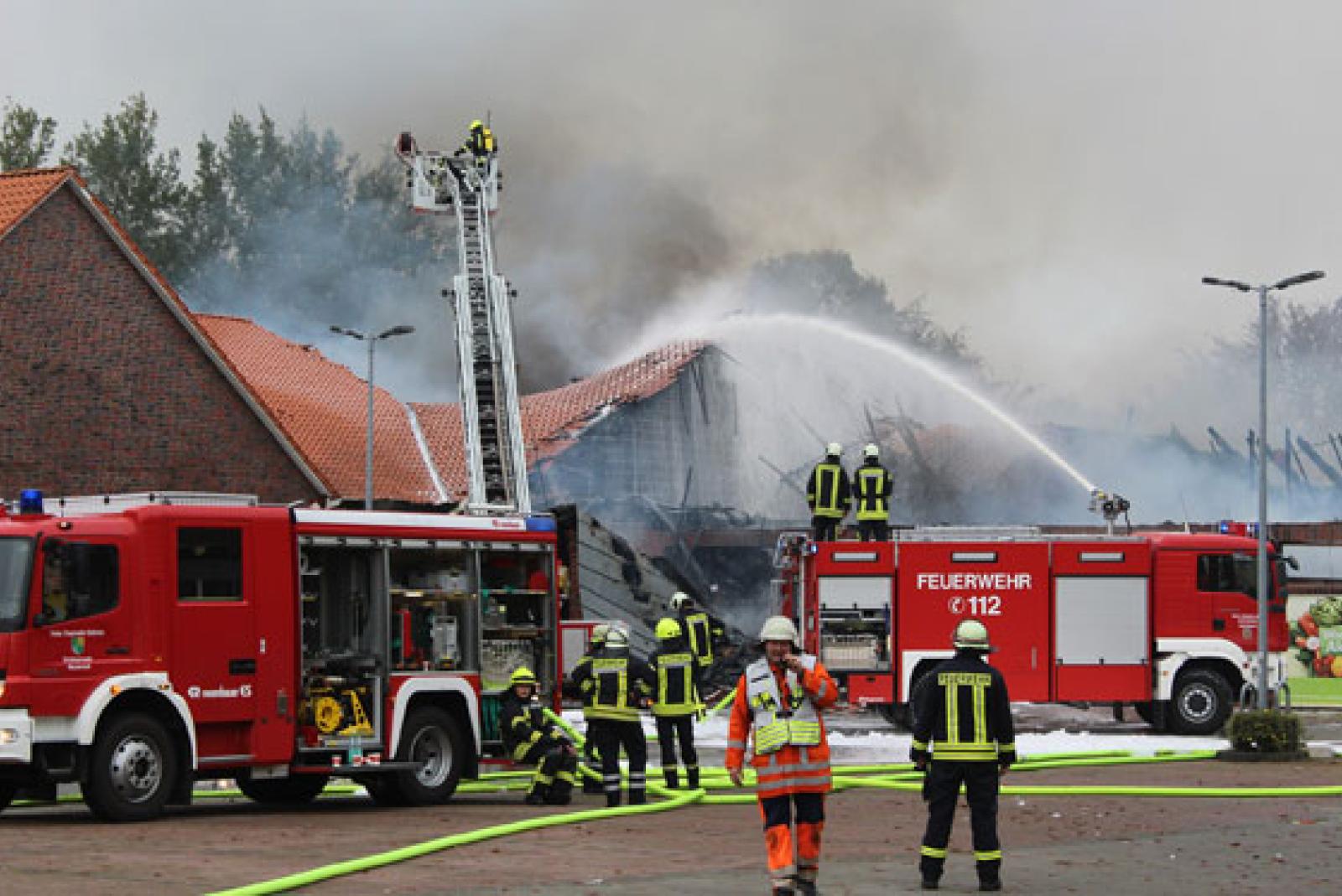 Bei einem Großbrand sind am Montag in Westerholt ein Aldi- und ein Tedi-Markt an der Dornumer Straße zerstört worden. Gegen 13.15 Uhr soll laut Angaben von Polizei und Feuerwehr ein Mitarbeiter des Aldi-Marktes eine Rauchentwicklung im Lager festgestellt ...