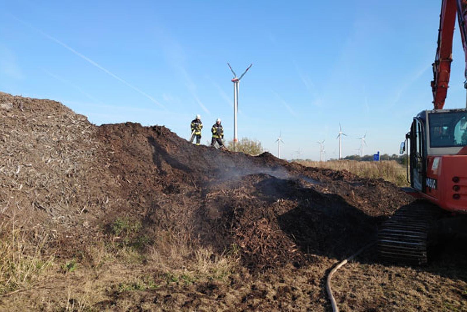 Als erste Löschversuche keinen großen Erfolg zeigten, da sich die Flammen bereits tief in den aufgehäuften Schredder gefressen hatten, wurde ein Lohnunternehmen mit einem Bagger und einem Traktor mit Güllefass angefordert. Durch dessen Unterstützung konnte der Brandherd schließlich freigelegt und abgelöscht werden.