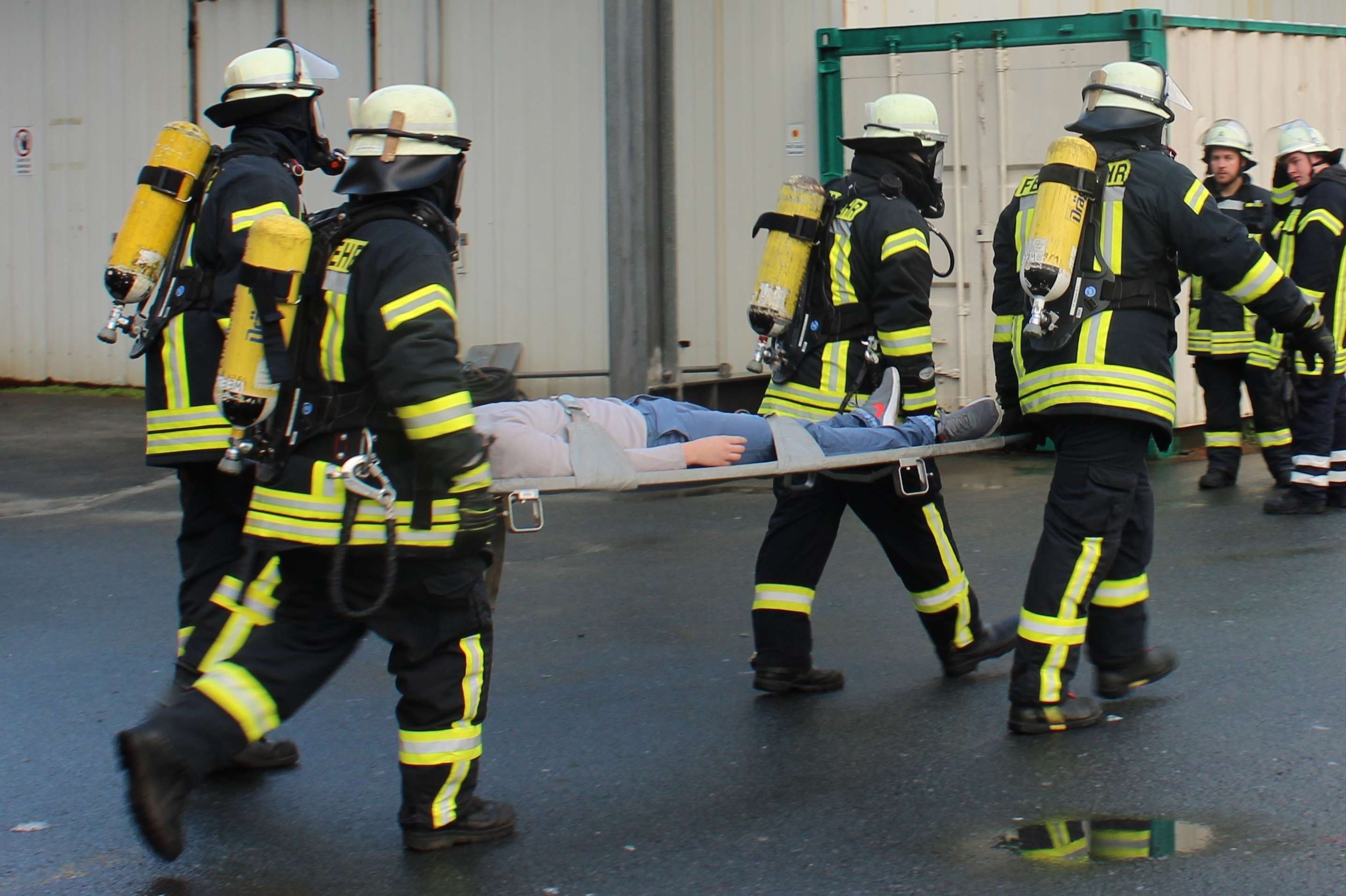 Die Verletzten-Darsteller wurden dabei durch Mitglieder des Deutschen Roten Kreuzes Ortsverband Weener entsprechend hergerichtet. Um 9 Uhr alarmierte die Leitstelle zunächst die Schwerpunktfeuerwehr Weener zur Firma Klingele. Die Einsatzkräfte unter der Leitung von Einsatzleiter Hans-Joachim Kotulla, sperrten zuerst die Gefahrenstelle ab und führten die Menschenrettung unter Atemschutz durch. Die geretteten Personen wurden vor der Übergabe an den Rettungsdienst durch die Feuerwehr dekontaminiert. Desweiteren forderte die Schwerpunktfeuerwehr Spezialkräfte des Gefahrgutzuges an und stellten den Brandschutz sicher. Der Malteser Hilfsdienst übernahm die Versorgung der geretteten Personen und die Gefahrguteinheiten in schweren Chemikalienschutzanzug (CSA) übernahmen die Sicherstellung und Identifikation von Gefahrstoffen.