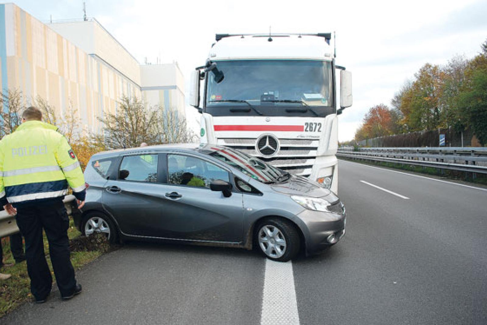 Durch den Verkehrsunfall wurde der Autofahrer leicht verletzt. Eine Behandlung in einem Krankenhaus war aber nicht nötig. Am Auto, am Lastwagen und an der Außenschutzplanke entstanden Sachschäden in einer Höhe von ca. 5000 Euro.