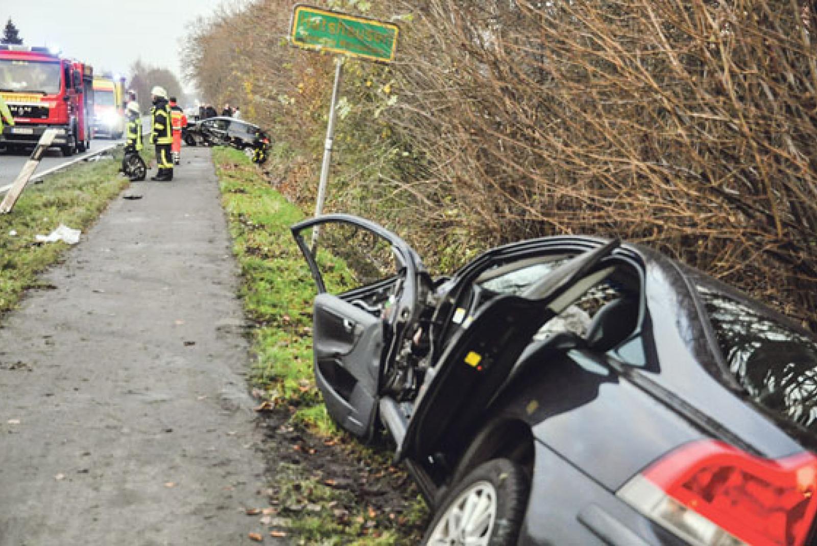 Ein schwerer Verkehrsunfall hat sich heute Nachmittag in Hatshausen (Gemeinde Moormerland) ereignet. Zwei Autos sind frontal zusammengekracht. Die Timmeler Straße musste voll gesperrt werden.