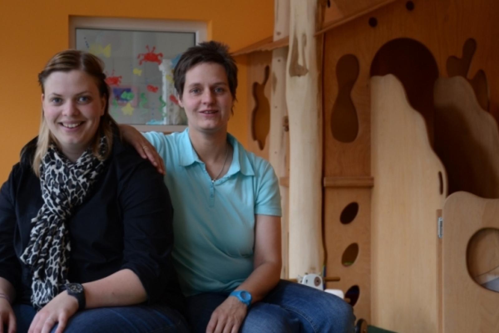 Freuen sich auf den?»Zuwachs« im neuen Krippen-Jahr ab Oktober: Ilka van Hoorn (links) und Dagmar Abbas von der Kinderkrippe Bunde. © Wübbena