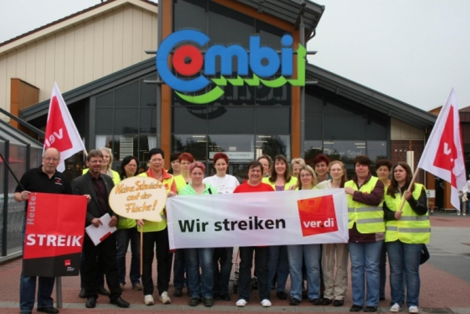 Die Vereinte Dienstleistungsgewerkschaft (ver.di) hat die Beschäftigten der »Combi«-Verbrauchermärkte in Ostfriesland und Friesland sowie die des »Real«-SB-Warenhauses in Emden zum Streik aufgerufen. Im Rheiderland folgten gestern rund 20 Mitarbeiterinnen des »Combi«-Marktes in Bunde dem Aufruf ...