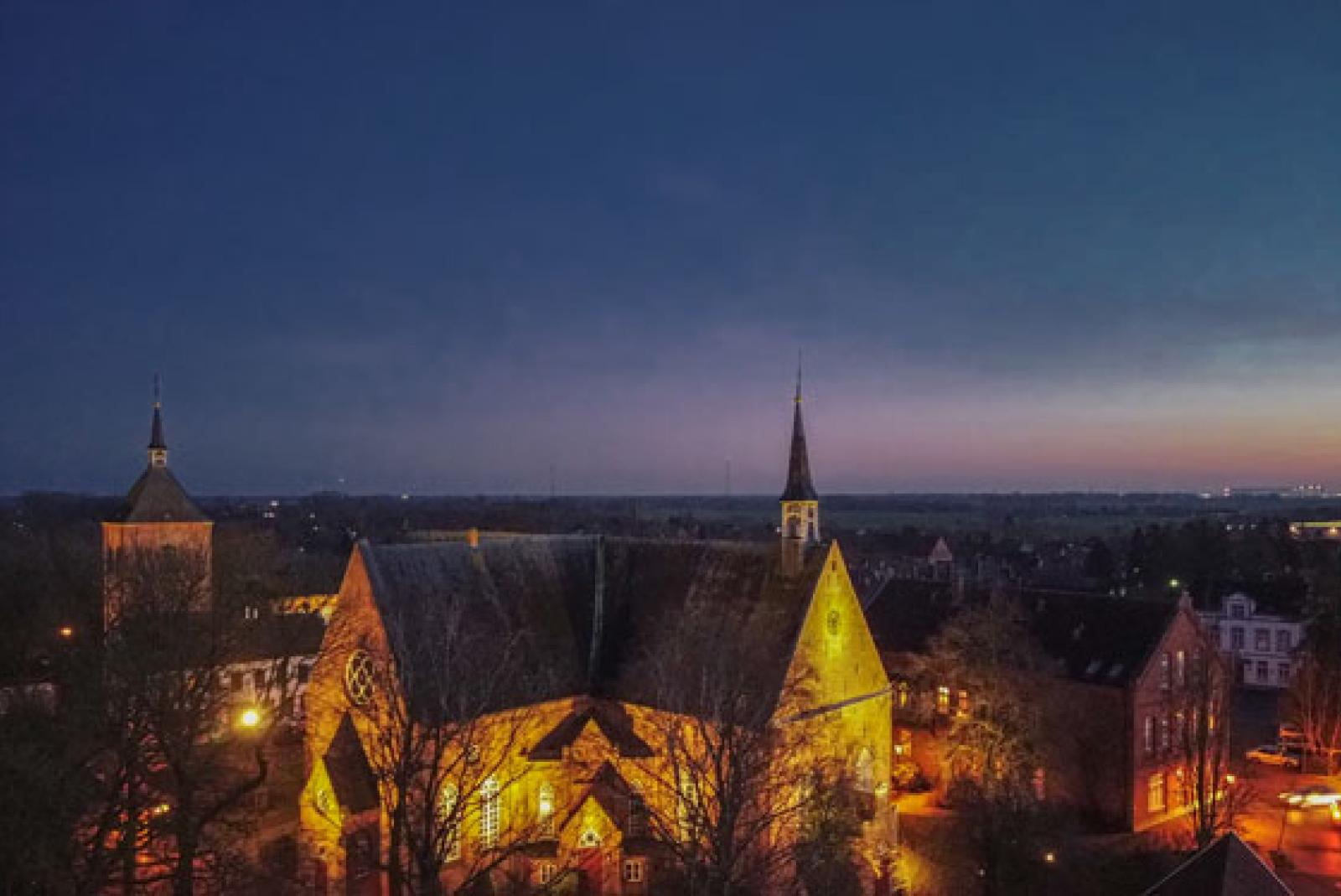 Für Bürgermeister Ludwig Sonnenberg ist es »eine wesentliche Verbesserung«: Die Stadt Weener hat die Außenbeleuchtung der Georgskirche mit dem benachbarten Glockenturm sowie die Außenbeleuchtung des Rathauses mit insgesamt 21 neuen LED-Strahlern modernisiert.