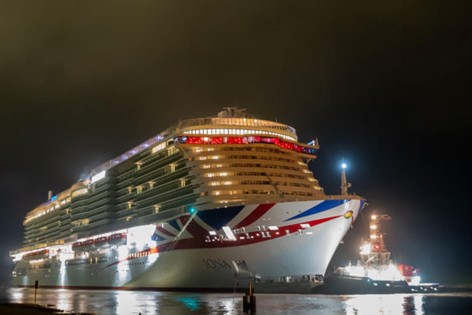 Ohne Zwischenfälle hat das neue Kreuzfahrtschiff »Iona« sich in der vergangenen Nacht bei seiner Flusspassage seinen Weg auf der schmalen Ems von Papenburg Richtung Nordsee gebahnt.