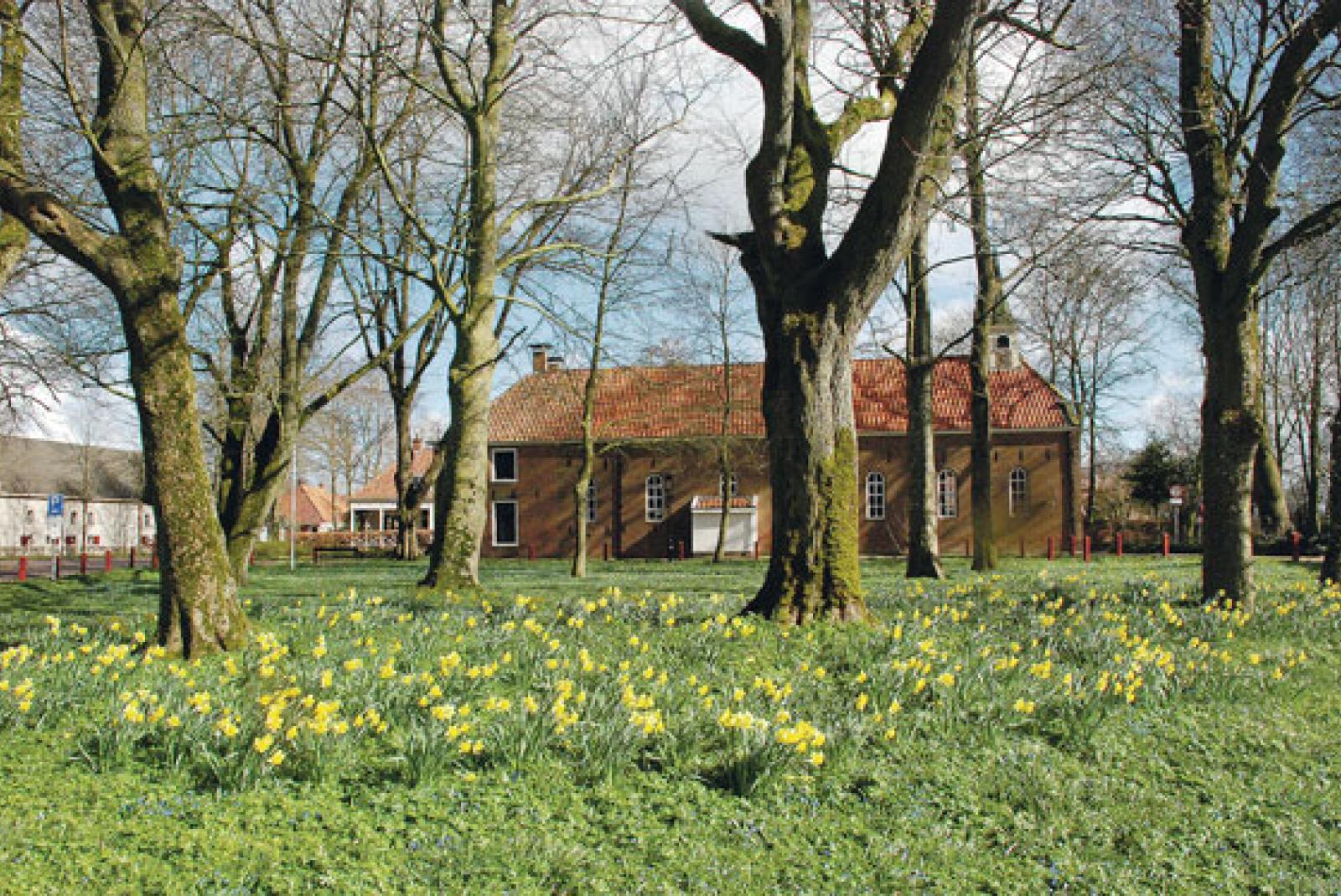 Kontrastreiche Natur vor der historischen Garnisonskirche in Oudeschans