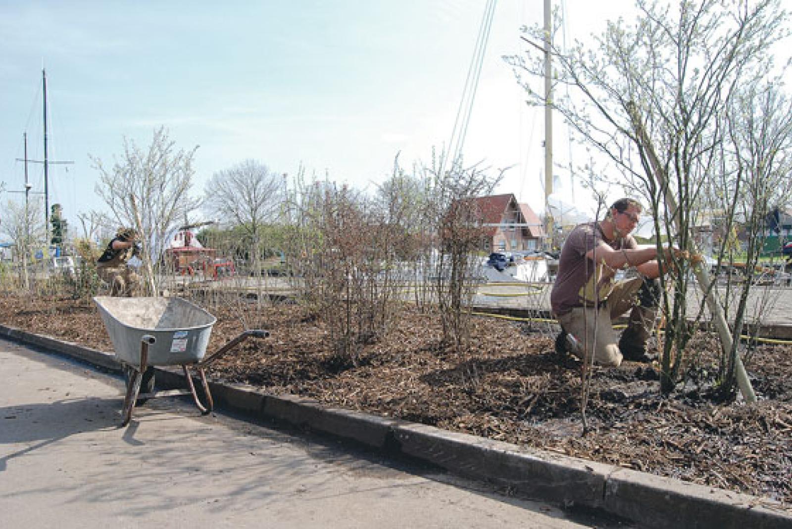 Der etwa 70 Meter lange Pflanzstreifen am Alten Hafen, in dem vorher etliche Bäume standen, bietet seit gestern ein neues Bild: Insgesamt 254 Sträucher hat die Firma »Der Landschaftsgärtner« von Wilfried Tamnen aus Leer in zwei Tagen im Auftrag ...
