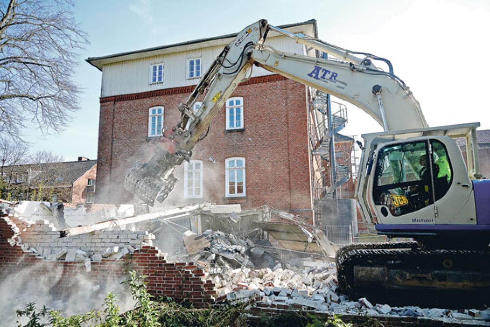 Bagger reißt Mauern ein