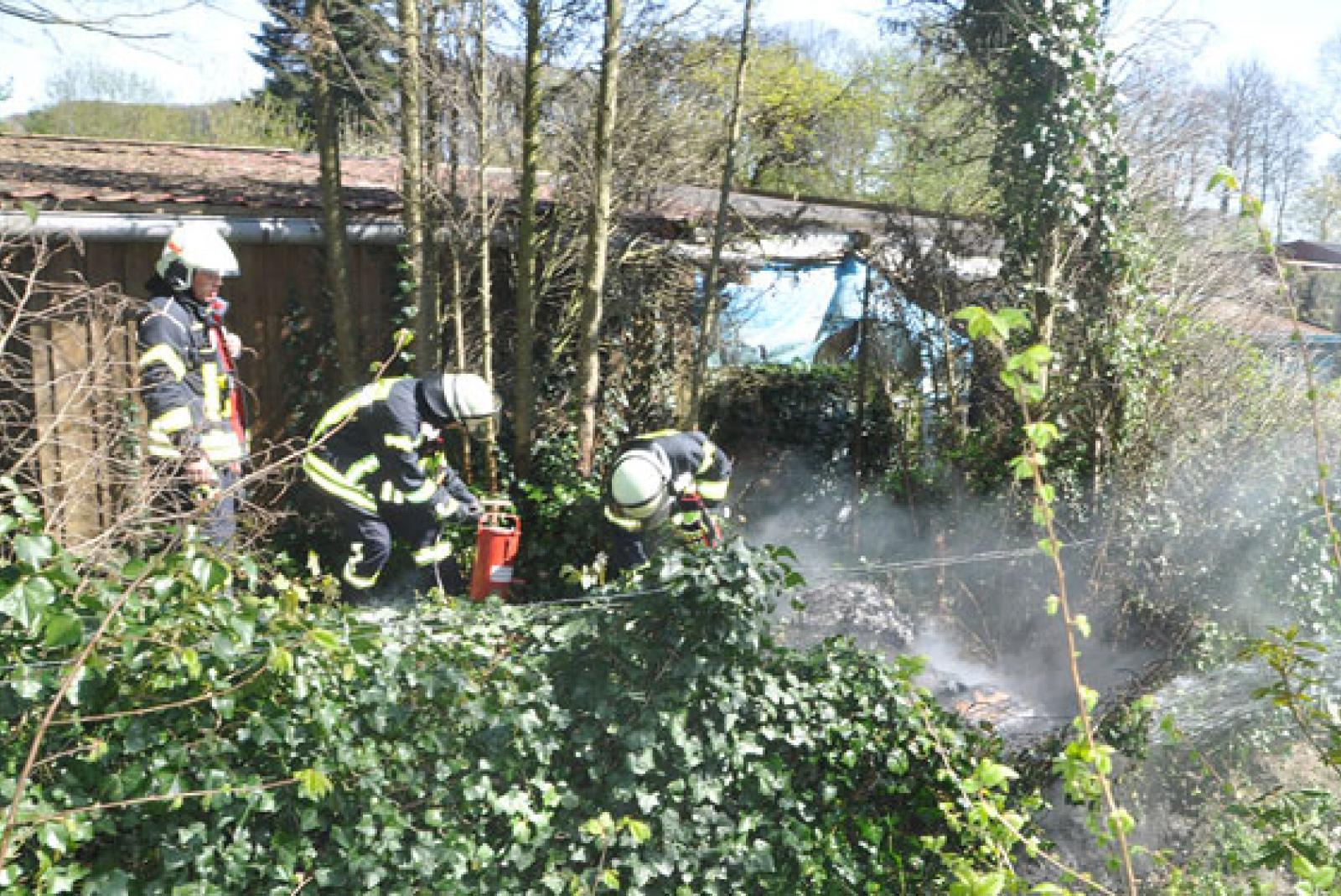 Glut setzt Wall in Flammen: In einem Schrebergarten unter den Eichen in Leer-Loga war heute gegen 14.30 Uhr das Eingreifen der Freiwillige Feuerwehr Loga gefordert. Ein Gartenbesitzer hatte seinen Grill oder Feuerkorb am Wall hinter seinem Gartenhaus ausgekippt und damit den Wall in Brand gesetzt. Die Feuerwehr Loga verhinderte ein Übergreifen der Flammen auf das daneben sthende Gartenhaus. Die Feuerwehr war mit vier Einsatzfahrzeugen vor Ort.