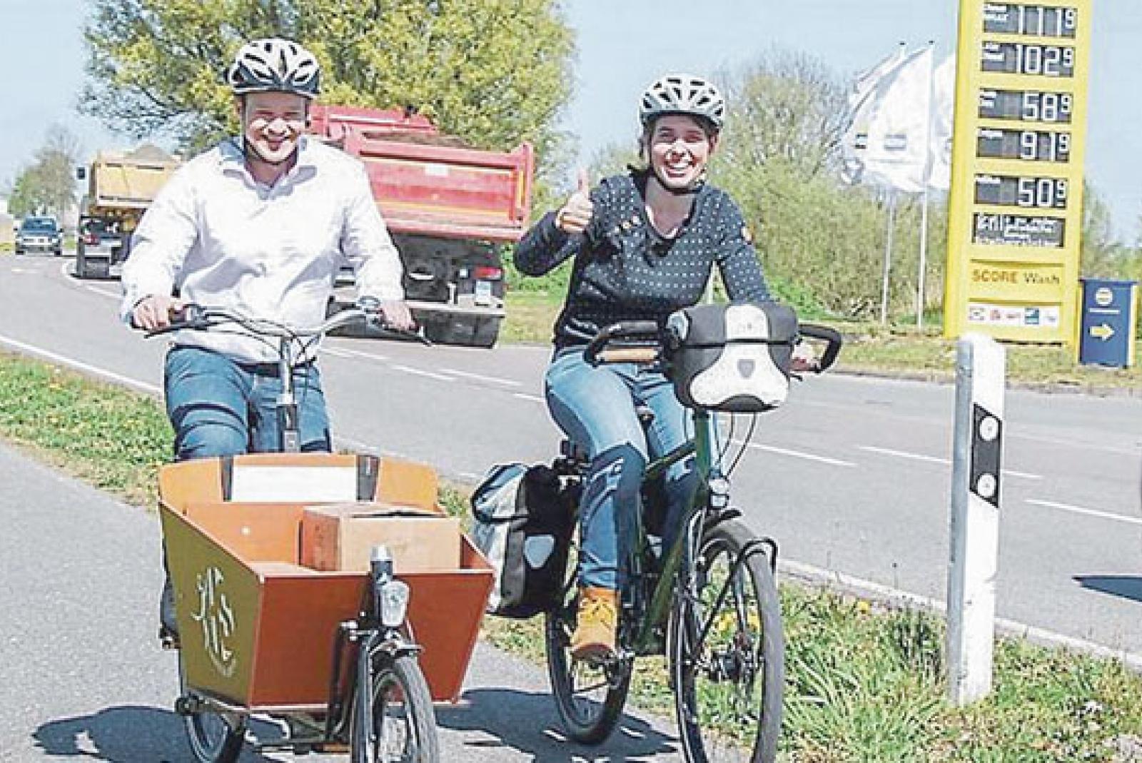 Hochschul-Beschäftigte brachten faire Ware mit dem Rad zu den Betrieben