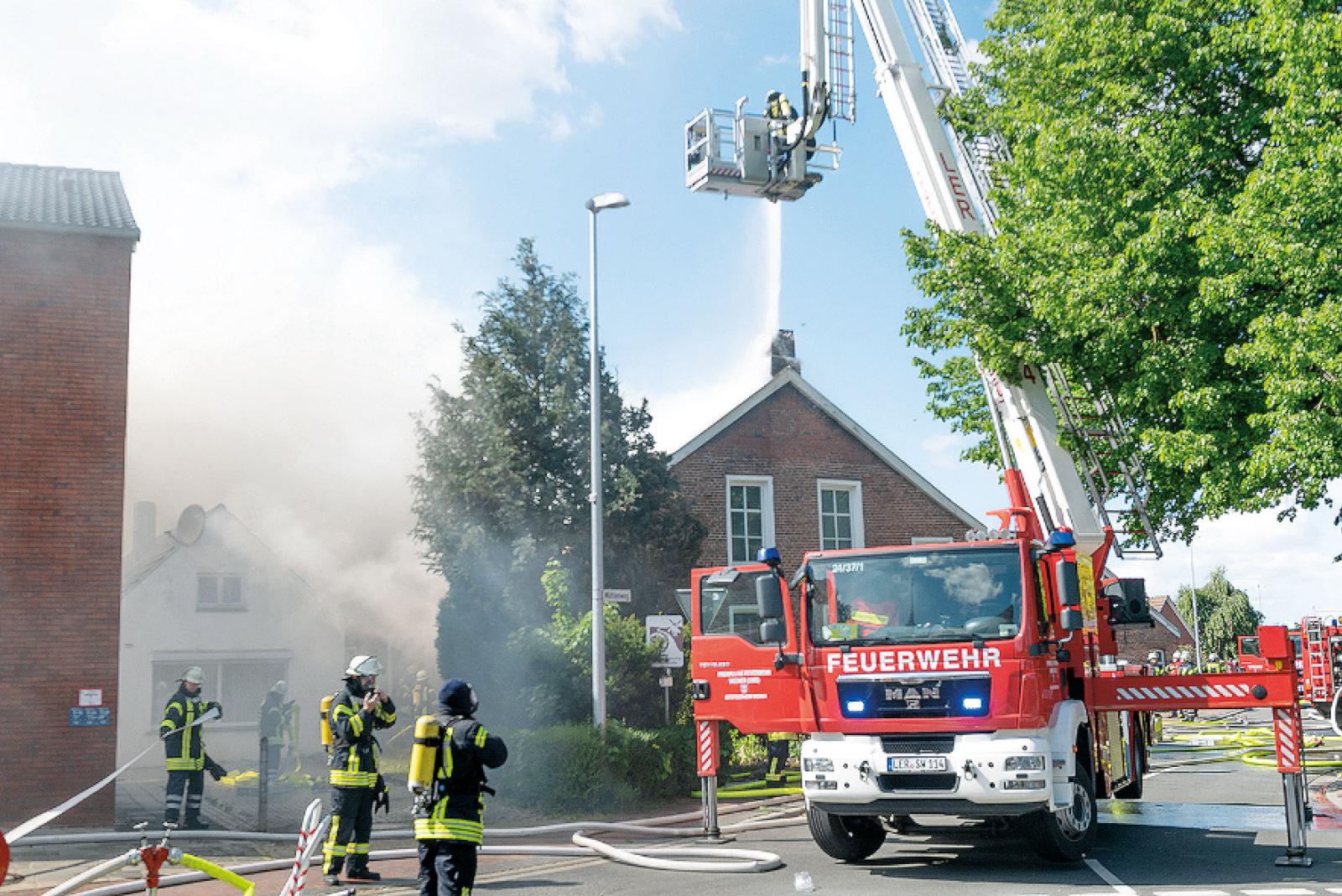 Wie Dominik Janßen, Pressesprecher der Kreisfeuerwehr, auf Anfrage der RZ erklärte, hat der Brand einer Garage offenbar auf den Dachstuhl des Hauses übergegriffen. Nach RZ-Informationen ist ein technischer Defekt in einer Kühltruhe, die in der Garage stand, für das Feuer verantwortlich. Die Bewohnerin des Gebäudes konnte sich unverletzt aus ihrer Wohnung im hinteren Hausteil in Sicherheit bringen. »Der Dachstuhl stand voll in Flammen, als die Einsatzkräfte eintrafen. Das Haus war leer«, so Joachim Rand, Sprecher der Stadtfeuerwehren. »Das Gebäude ist jetzt unbewohnbar«, ergänzte er. Ein Übergreifen der Flammen auf das benachbarte Wohnhaus konnte verhindert werden.