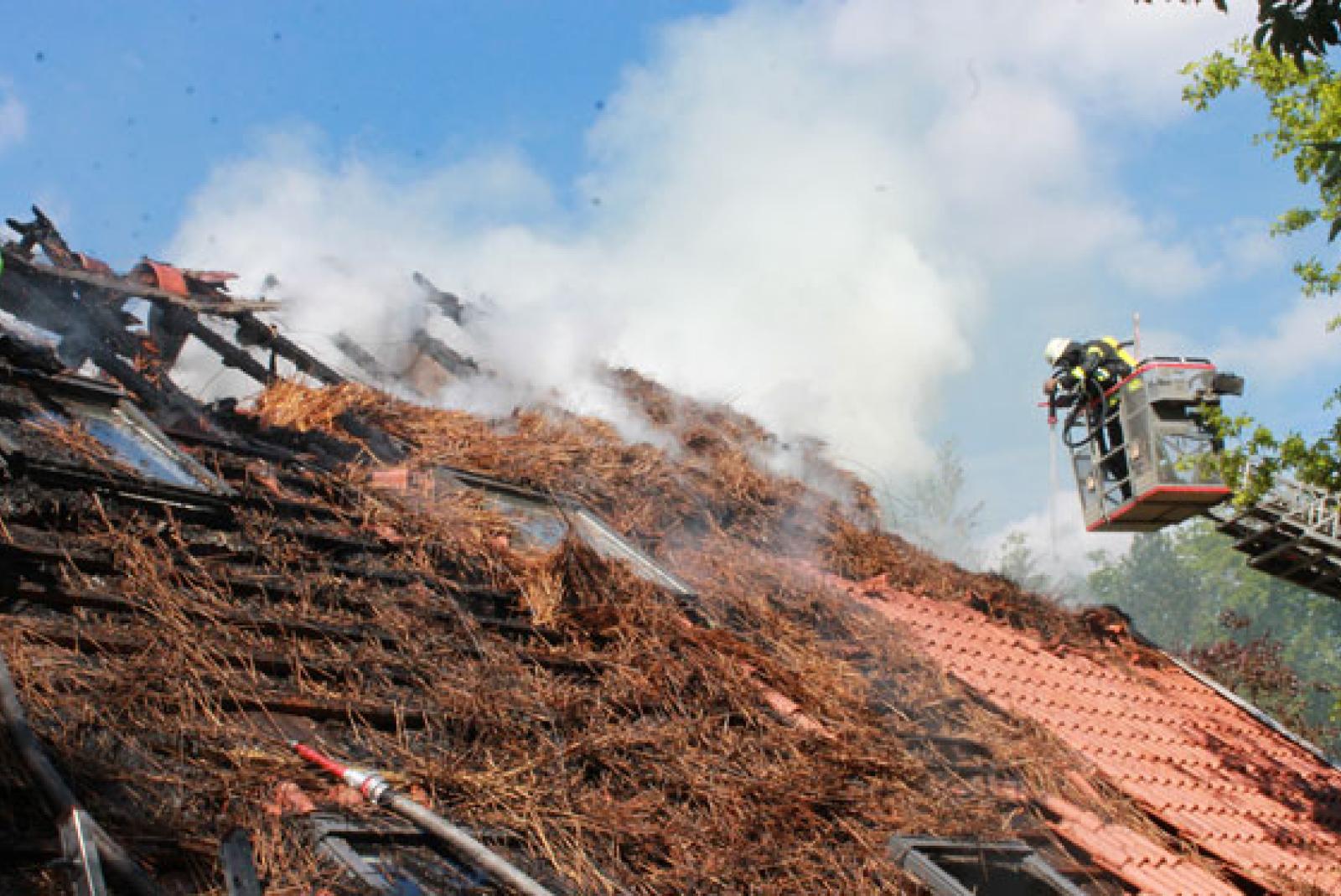 Laut Polizeimeldung bemerkte eine Bewohnerin gegen 8.30 Uhr Brandgeruch und entdeckte ein Feuer. Erste Löschversuche durch die Bewohner schlugen fehl. Wenngleich die freiwillige Feuerwehr sehr schnell am Brandort war, breitete sich das Feuer über den gesamten, in Teilen mit Reet eingedeckten, Dachstuhl aus. Dieses erschwerte die Löscharbeiten, da Löschwasser nur schwer in Reetdächer eindringen kann, so die Kreisfeuerwehr in einer Mitteilung. Drei Atemschutztrupps gingen in das Gebäude vor, um eine Brandbekämpfung von innen vornehmen zu können.