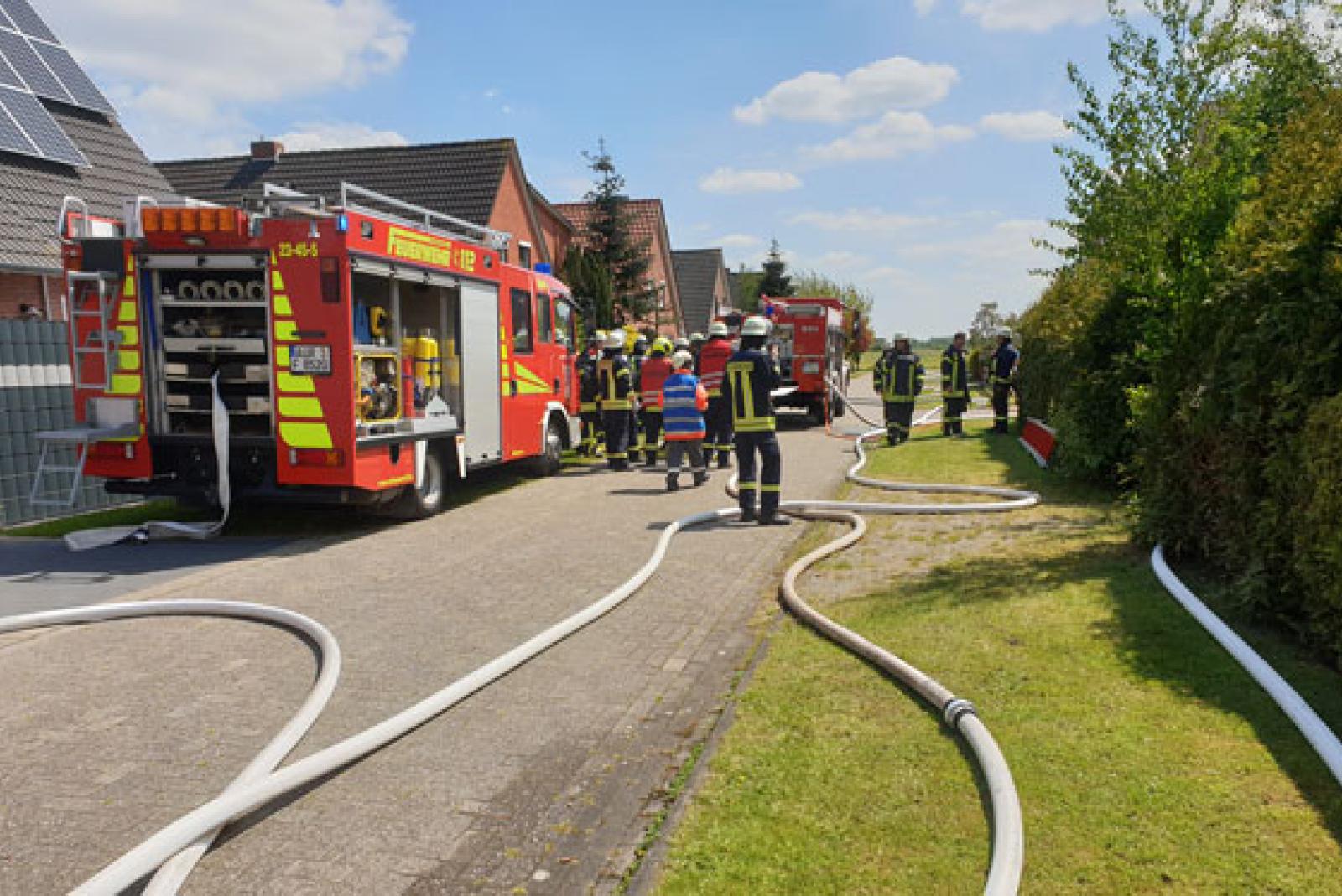 Wie die Feuerwehr mitteilte, ging um 12.46 Uhr in der Regionalleitstelle ein. Beim Eintreffen des ersten Fahrzeugs der Feuerwehr Wiegboldsbur wurde sofort die Alarmstufe erhöht, weil die Flammen bereits auf das Wohnhaus übergegriffen hatten. Die Feuerwehren Uthwerdum, Oldeborg, Victorbur, Münkeboe und das Rote Kreuz Südbrookmerland mit der Schnelleinsatzgruppe »Sanität« wurden zusätzlich alarmiert.