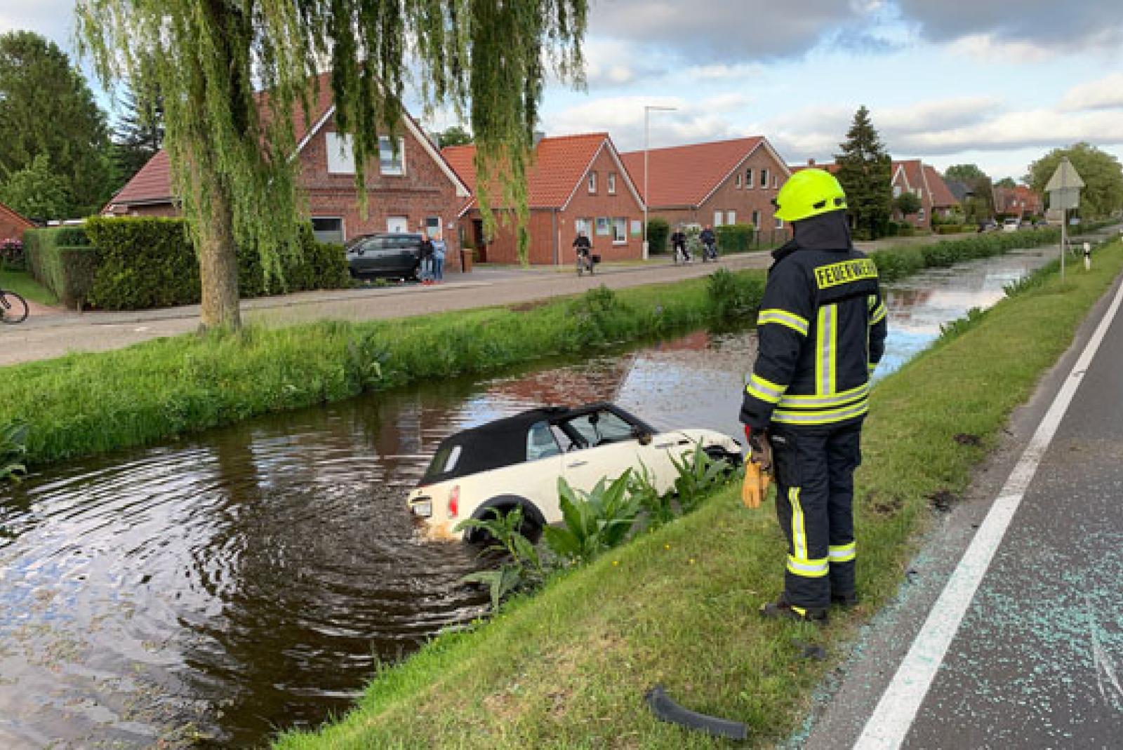 Da die Fahrerin sich selbst aus dem verunglückten Fahrzeug befreien konnte, war ein Eingreifen der Feuerwehr Papenburg Untenende nicht mehr erforderlich. Die ebenfalls alarmierte Wasserrettung der Feuerwehr Obenende mit ihren Feuerwehrtauchern konnte ebenfalls direkt nach dem Eintreffen die Einsatzstelle wieder verlassen. Die eingesetzten Feuerwehrleute übernahmen die Sicherung der Unfallstelle und unterstützten das alarmierte Abschleppunternehmen beim Bergen des Fahrzeuges aus dem Kanal.