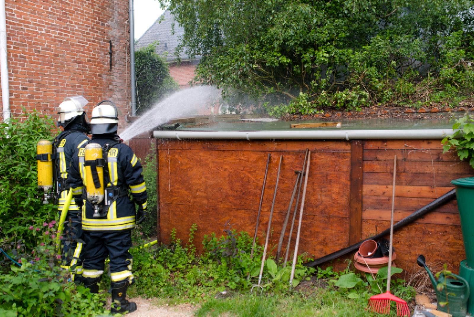 Holzschuppen steht in Flammen