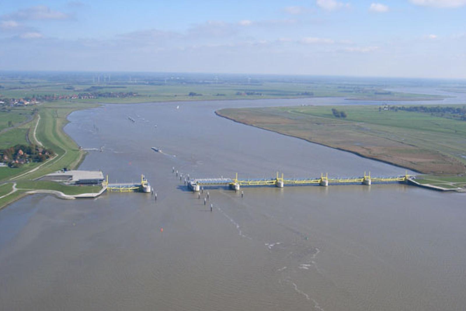 Voraussichtlich am 1. Juli beginnen im Auftrag des NLWKN (Niedersächsischer Landesbetrieb für Wasserwirtschaft, Küsten- und Naturschutz) rund einmonatige Arbeiten zur Ausbesserung der Sohlsicherung vor der zweiten Nebenöffnung des Emssperrwerkes bei Gandersum.