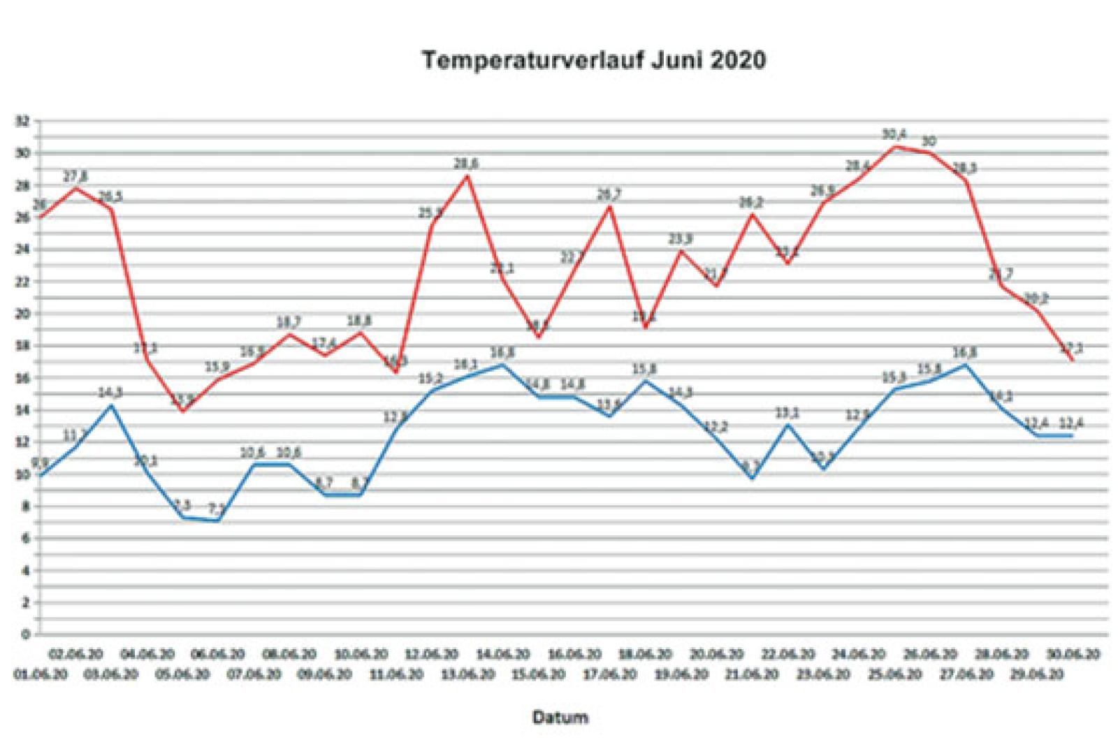 »Der Juni ist vorbei, ein Monat, in dem die Temperatur gerne Achterbahn fuhr«, schreibt RZ-Experte Jannes Wessels in seinem Wetter-Rückblick. Insgesamt war des Wetter im Juni recht wechselhaft-