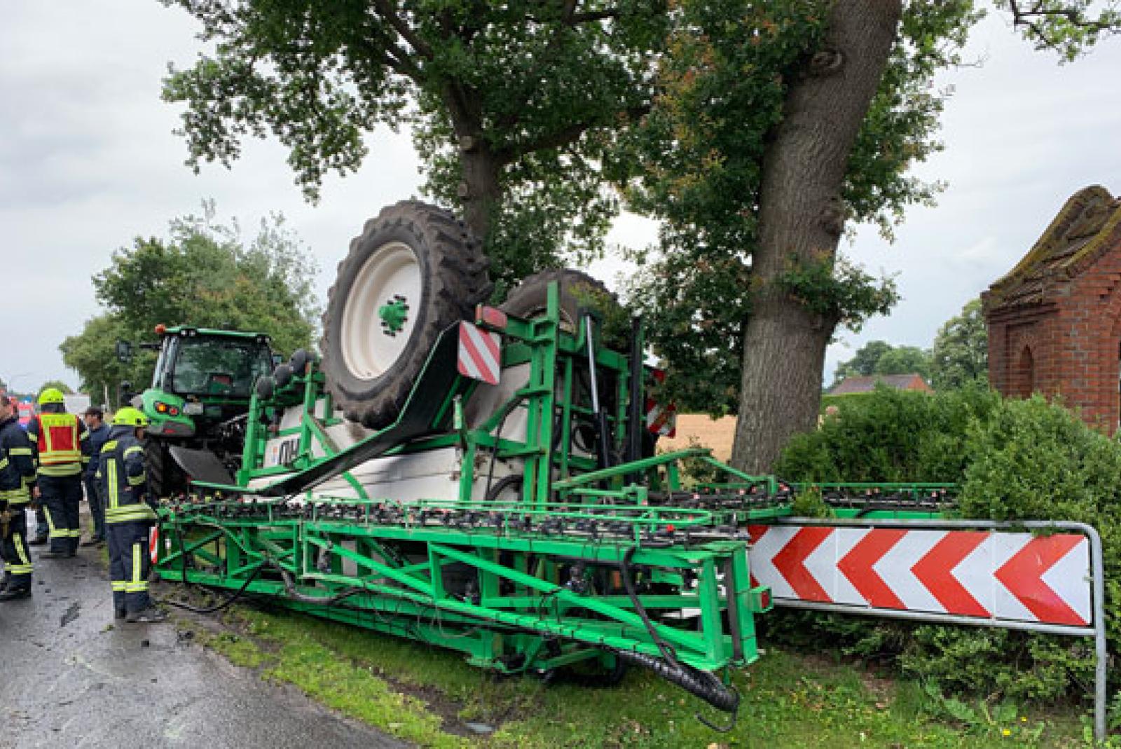Am Dienstag Nachmittag rief eine umgekippte Feldspritze die Feuerwehr Aschendorf auf den Plan.
