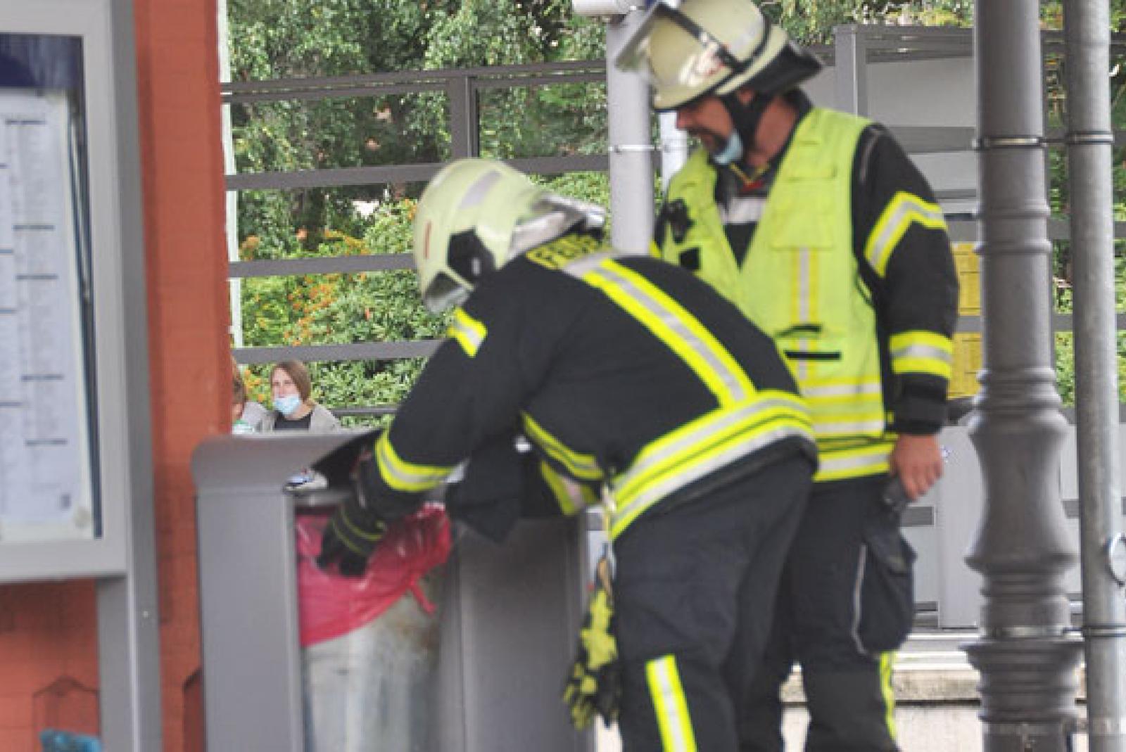 Nach Auskunft von Dominik Janßen, er ist Sprecher der Kreisfeuerwehr, bauten die Einsatzkräfte den Mülleimer ab und löschten das kleine Feuer mit Bordmitteln.