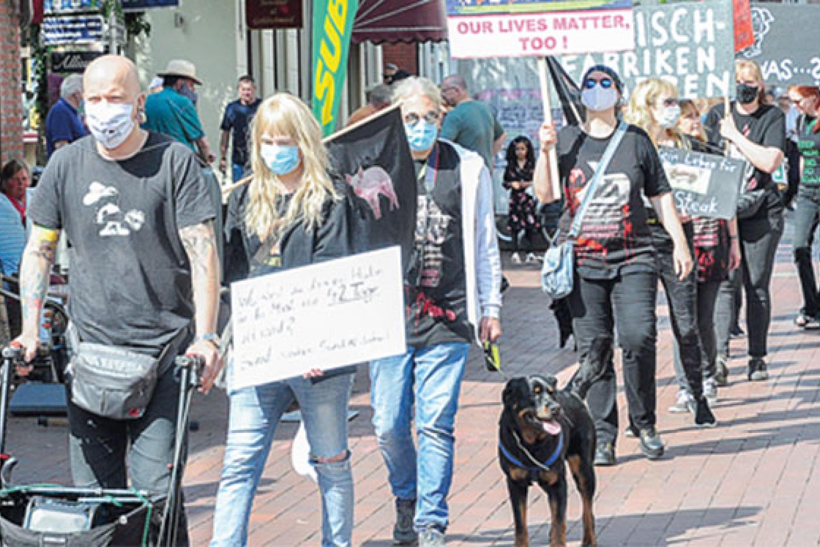 Die Gruppe » Ostfriesen gegen Tierleid« veranstaltete am Sonntag einen Trauermarsch durch die Fußgängerzone von Leer, um gegen Fleischindustrie, Massentierhaltung und Tiertransporte zu demonstrieren. Der Marsch begann an der Ecke Mühlenstraße/Norderstraße. Von dort ging es ...