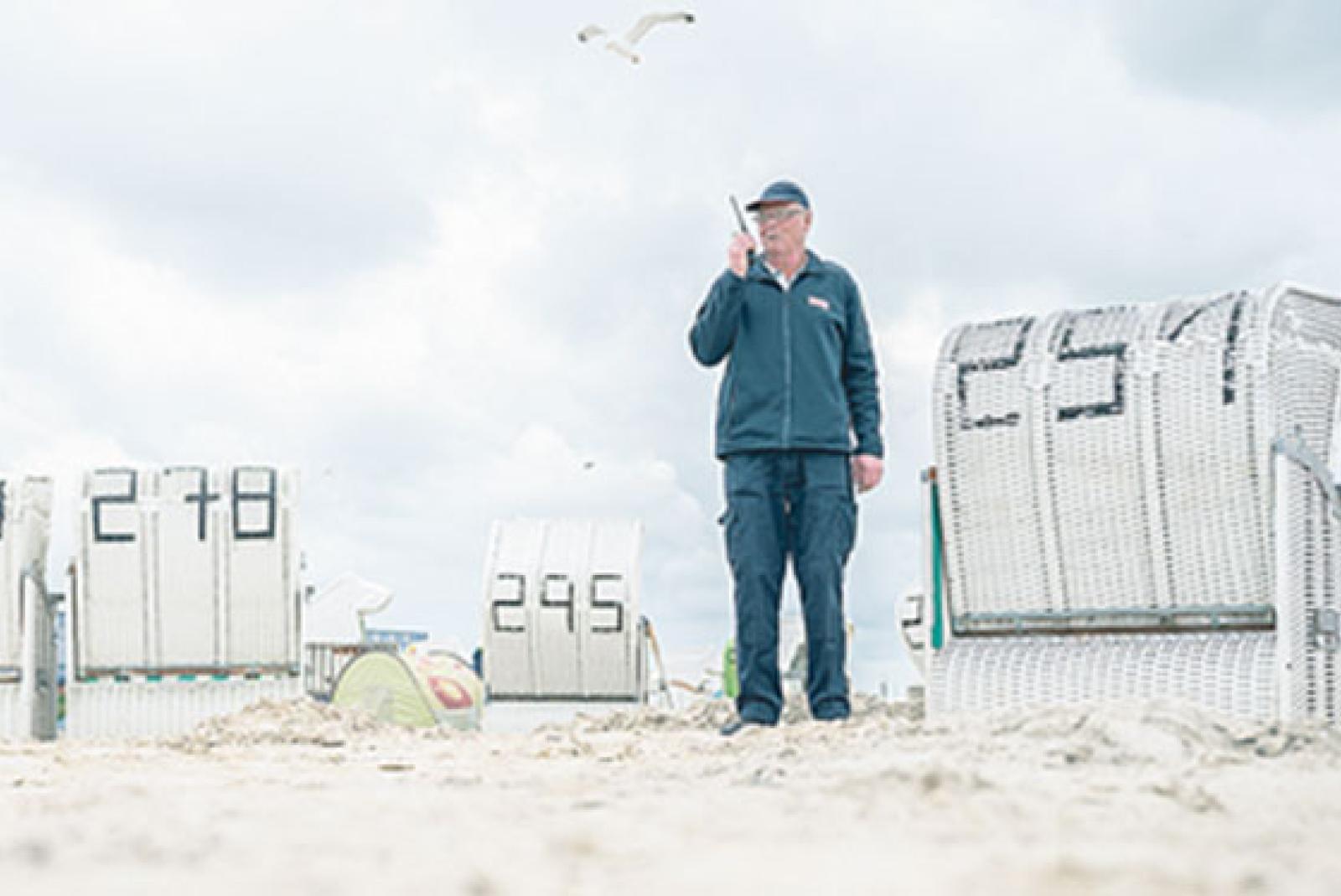 Die Strände im Inland sind im Corona-Sommer gefragt. Doch weil Abstand die Maßgabe ist, wurde mancherorts aufgerüstet. Auf Rundgang mit Wachmännern an der Nordsee. Über Strandkörbe wandert der Blick von Wachmann Anton Siemers hin zur ...