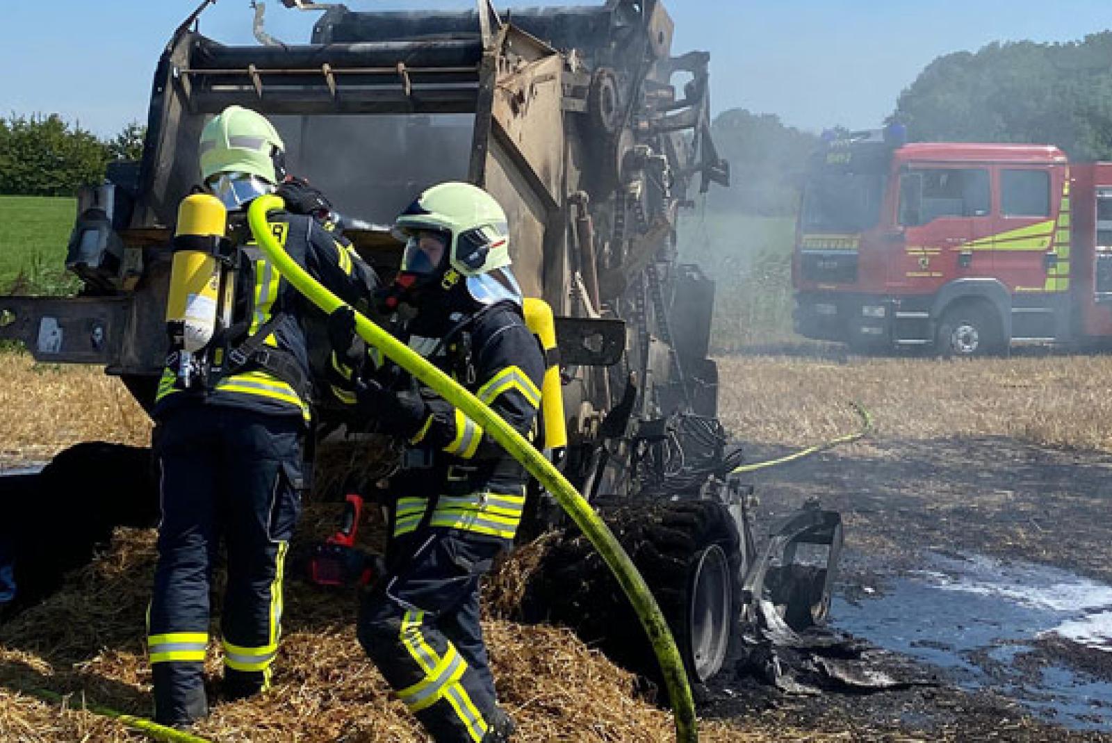 Am Sonnabend um 12.52 Uhr wurde die Feuerwehr Dornum zusammen mit den Feuerwehren Westerbur und Nesse zu einem Brand einer landwirtschaftlichen Maschine alarmiert.