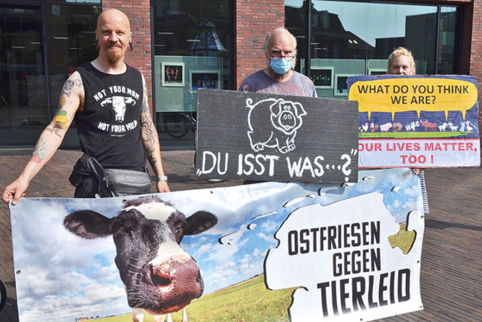 Die drei Emder Aktivisten Bianca Eden, Thilo Hoffmann und Manfred Hagemann der Gruppe »Ostfriesen gegen Tierleid« ...