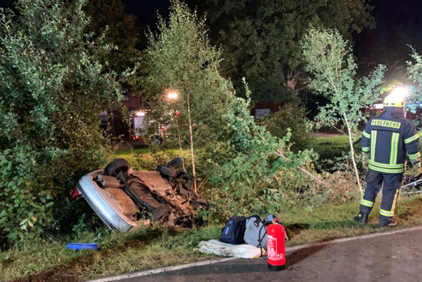 Laut Polizei war ein 22-Jähriger mit seinem Mitsubishi auf der Straße Splitting rechts unterwegs. Als er mehrere Fahrzeuge mit sehr hoher Geschwindigkeit überholte, kam er nach links von der Fahrbahn ab. Er lenkte gegen und verlor die Kontrolle über sein Auto. Das Fahrzeug schleuderte zurück auf die Straße, kam nach rechts von der Fahrbahn ab, überschlug sich und prallte gegen einen Baum.
