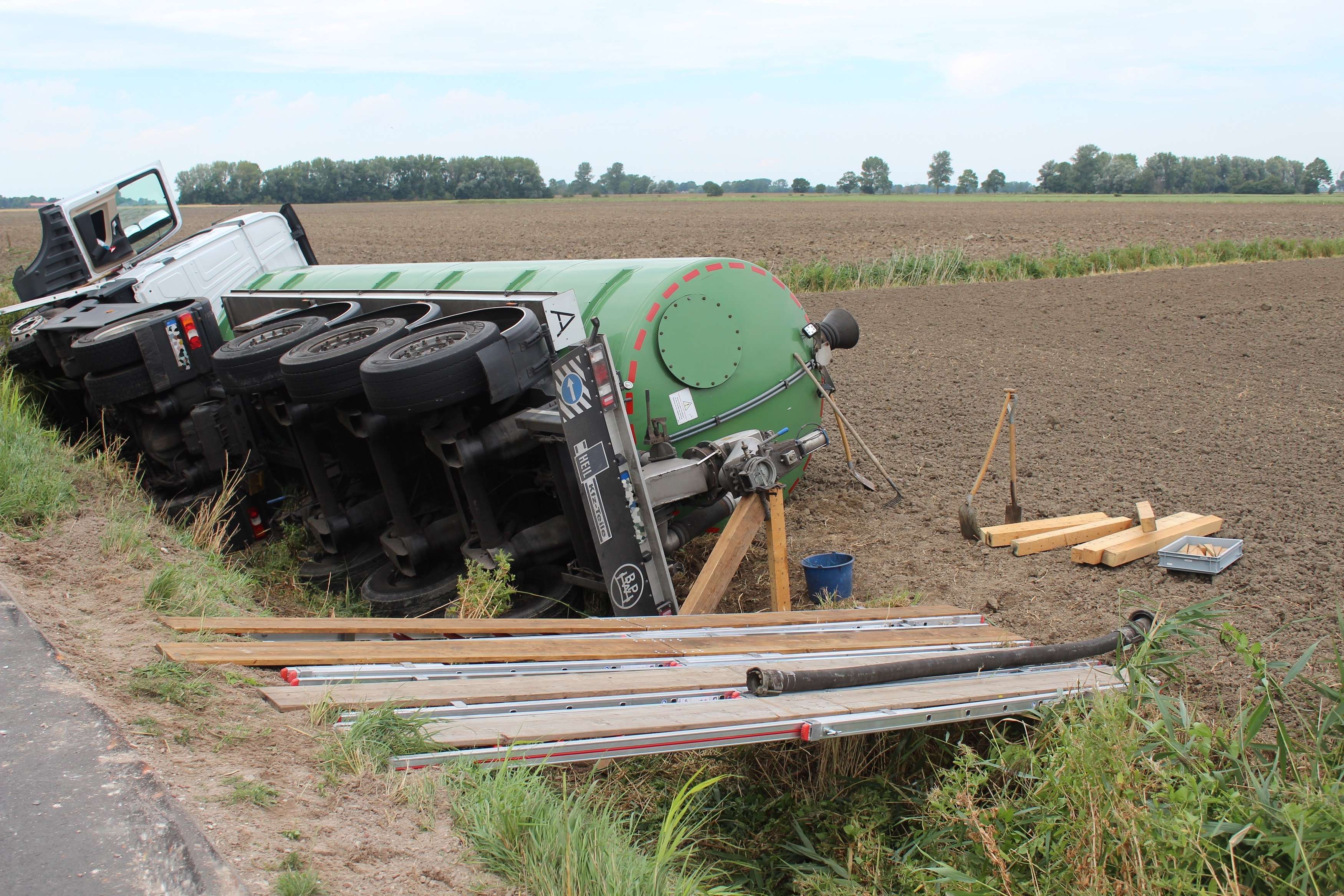 Güllelaster landet in Graben