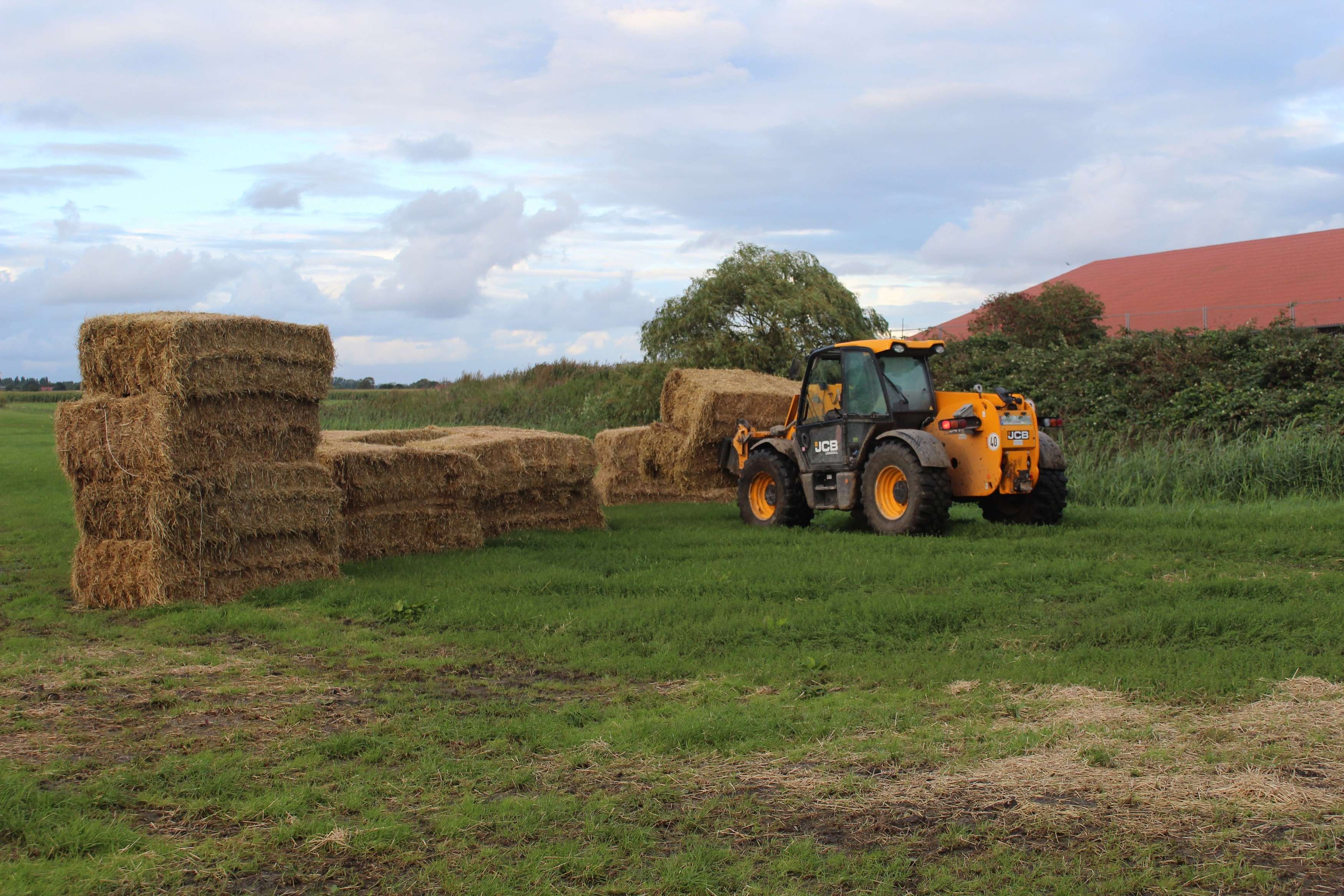Zunächst mussten die Einsatzkräfte eine Wasserversorgung errichten. Unter anderem diente hier das neue Greetsieler Sieltief als Wasserentnahmestelle. Im Anschluss wurden 60 Strohballen von dem Landwirt mit einem Teleskoplader aus der Scheune auf ein angrenzendes Feld gefahren.