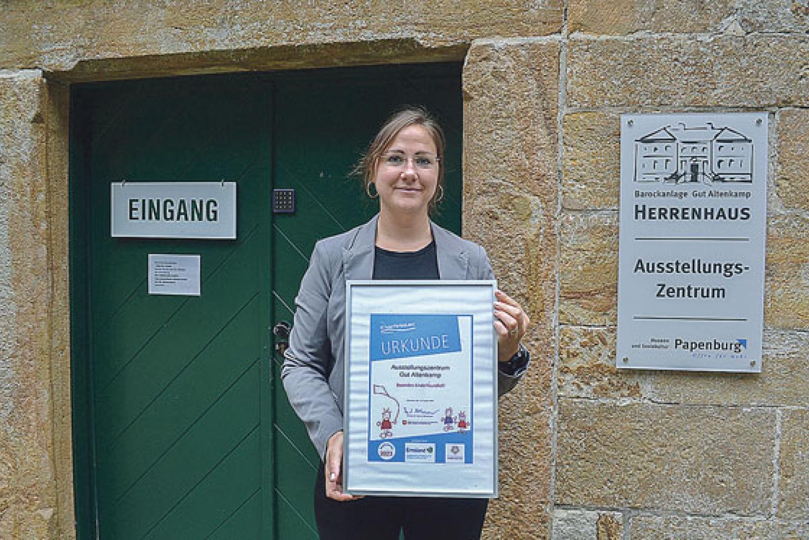 Das Ausstellungszentrum Gut Altenkamp in Aschendorf wurde jetzt vom Niedersächsischen Wirtschaftsministerium erneut als besonders kinder- und familienfreundlich ausgezeichnet und trägt nun für drei weitere Jahre die Zertifizierung »KinderFerienLand Niedersachsen«.