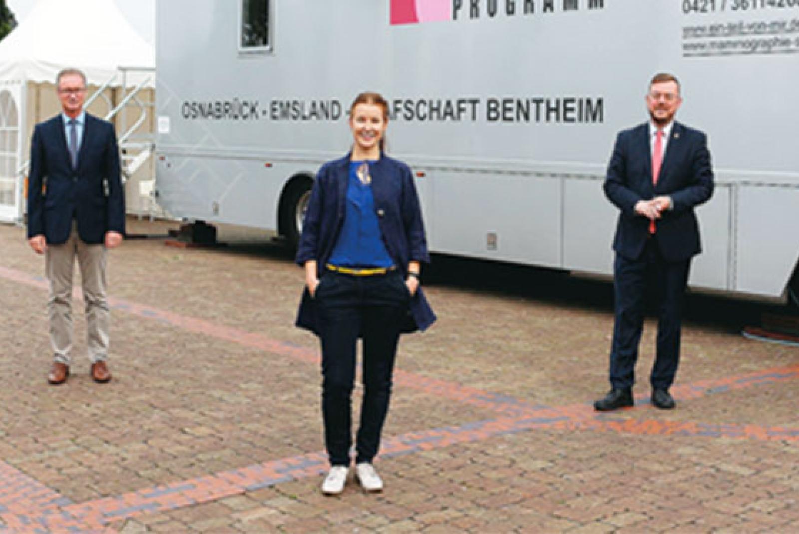 »Ich würde mich sehr freuen, wenn möglichst viele Frauen den Termin zu Mammografie wahrnehmen. Diese Untersuchung kann im konkreten Einzelfall Leben retten«, sagt Bürgermeister Jan Peter Bechtluft bei einem Ortstermin gemeinsam mit der städtischen Gleichstellungsbeauftragen Melanie ...