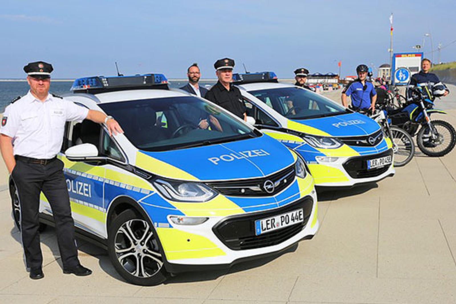 Die Polizei ist auf der Insel Borkum jetzt nahezu komplett klimafreundlich unterwegs. Mit zwei neuen Streifenwagen des Typs »Opel Ampera-e« wurde die Fahrzeugflotte auf Borkum weitgehend auf Elektromobilität umgestellt. Ausgebaut wurde in diesem Zuge auch die Ladeinfrastruktur vor Ort.