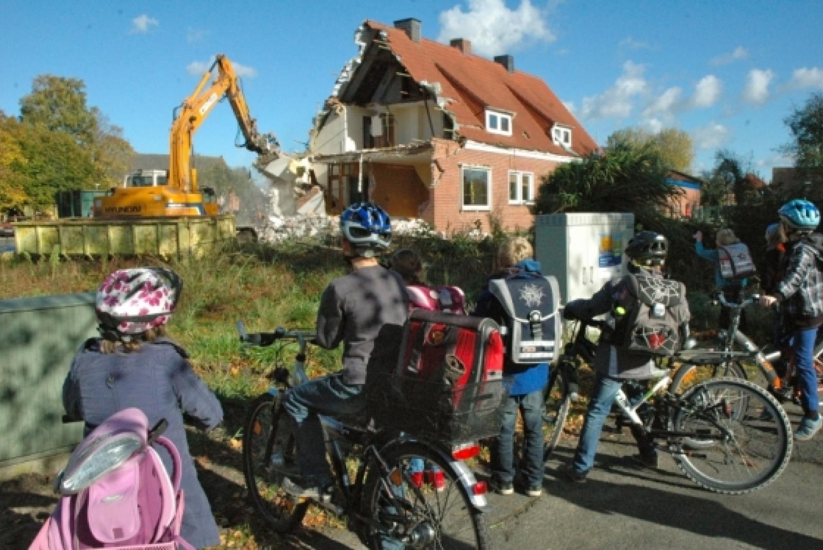 Abriss des städtischen Doppelhauses in Bingum macht Platz für Bau der Förderschule